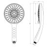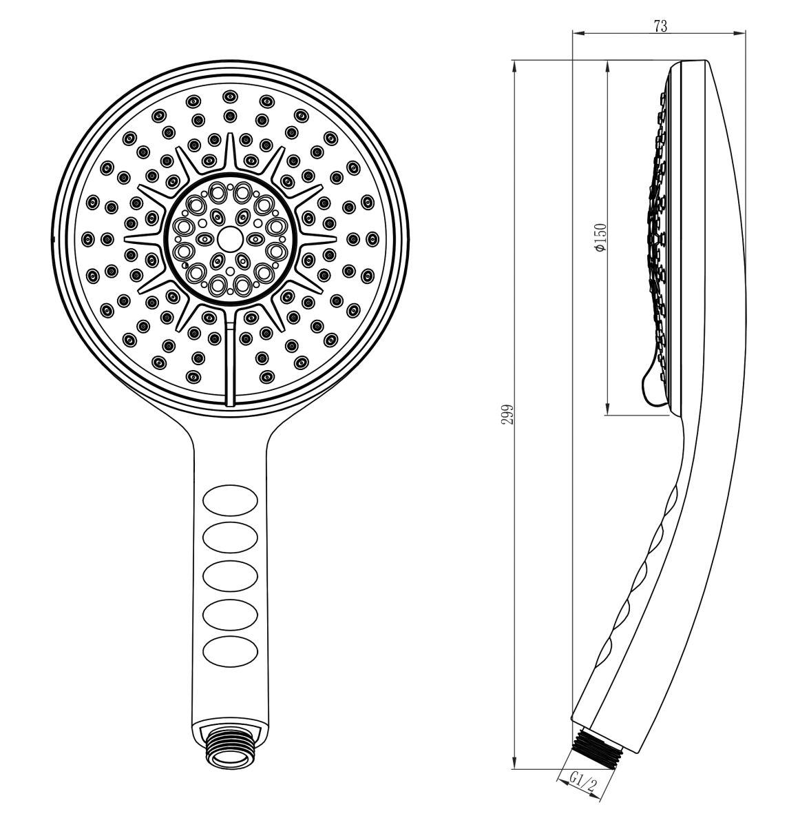 • 6-функциональная Ø150x299 мм. Режимы: распыление, массаж, брызги шампанского, распыление и массаж, распыление и брызги шампанского, эко-режим