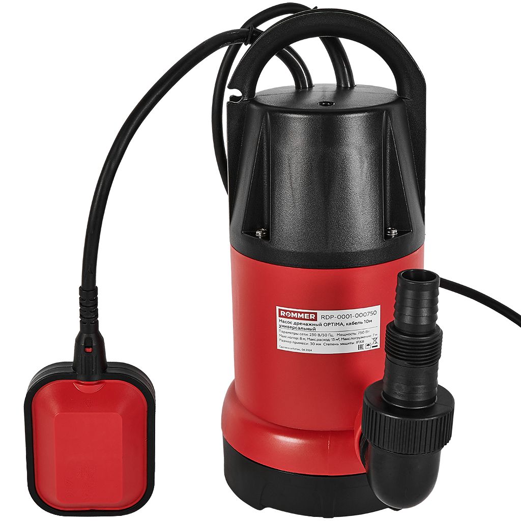 Насос дренажный ROMMER OPTIMA, кабель 10м, 750 Вт, универсальный