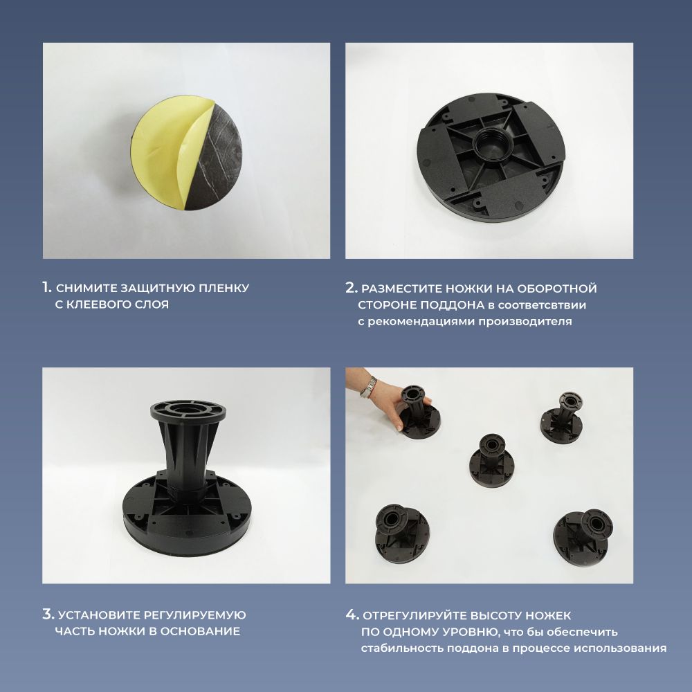 Ножки для поддона - это простое и универсальное решение для монтажа душевых поддонов из искусственного камня и литьевого мрамора, а также они идеально подходят в качестве опорной конструкции для мебели: шкафы, тумбы, стеллажи для хранения и т.д.