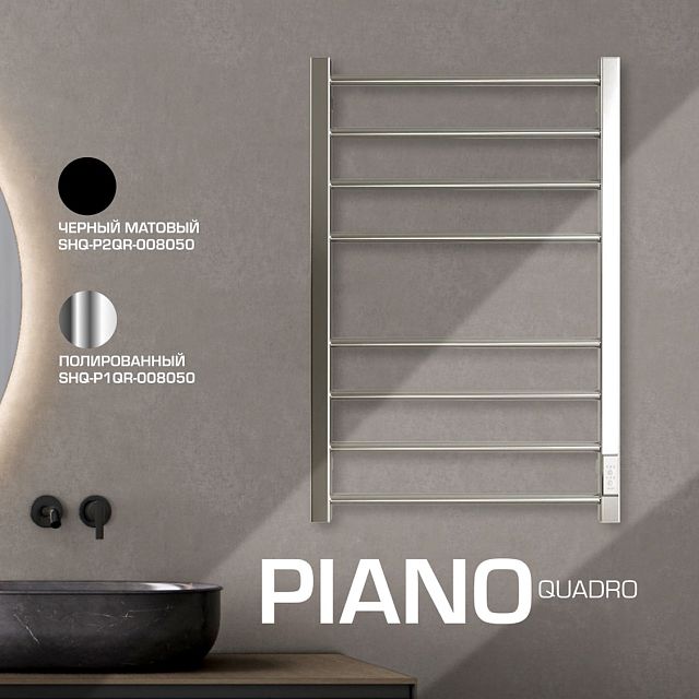 Полотенцесушитель STOUT электрический PIANO quadro 80*50 Полированный