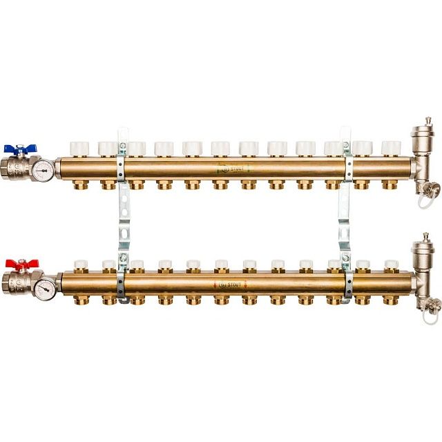 Распределительный коллектор из латуни без расходомеров STOUT 12 выходов