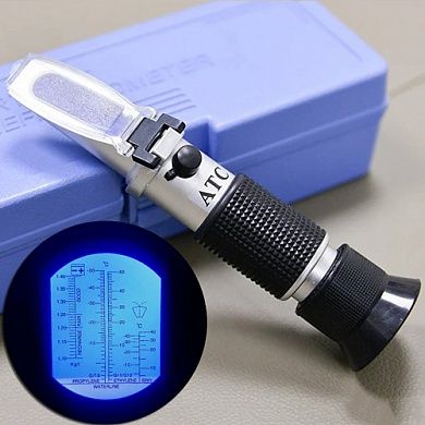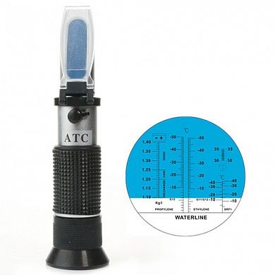 Портативный рефрактометр для антифриза, теплоносителя, электролита, стеклоомывающей жидкости предназначен для определения концентрации и температуры замерзания этиленгликоля и пропиленгликоля, позволяет производить экспресс анализ температуры кристаллизации антифриза и измерения плотности электролита в аккумуляторных батареях, температуры замерзания любых теплоносителей и стеклоомывающих жидкостей