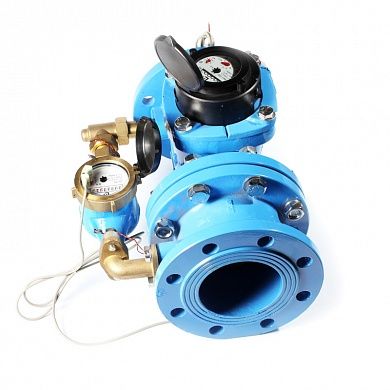 - Конструктивно в устройстве расположены два счетчика: турбинный счетчик для больших расходов, многоструйный крыльчатый счетчик для малых расходов. За счет этого достигается возможность точного измерения на объектах с широким диапазоном как малых, так и больших расходов воды.