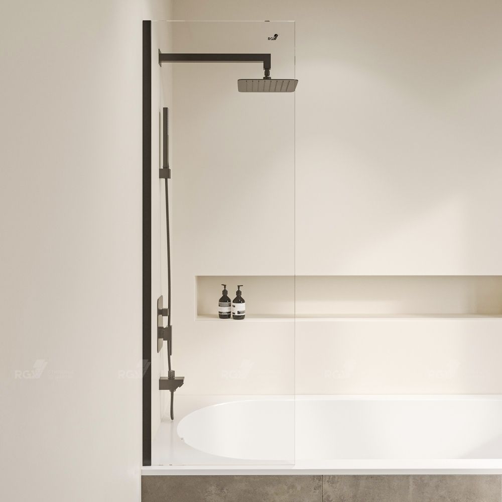 Толщина стекла 8 мм позволяет ей выдерживать значительные нагрузки и не повреждаться при ударах. Прозрачное стекло придает легкость и элегантность дизайну шторки, а черный профиль добавляет ей привлекательности и стильности, что позволяет ей гармонично вписываться в различные интерьеры.