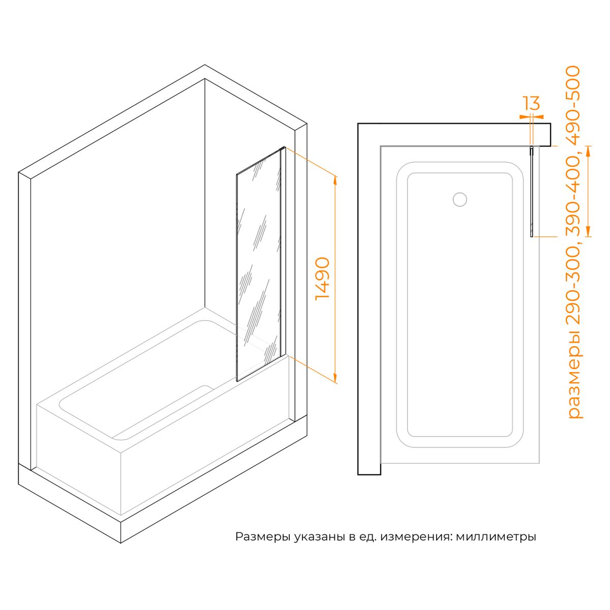Шторка имеет высоту в 1500 мм, что подходит для большинства ваннных комнат, а конструкция створки шторки неподвижная, что обеспечивает ее простоту и удобство в использовании. Кроме того, стекло покрыто слоем Easy Clean, что обеспечивает его легкую очистку и защиту от загрязнений.