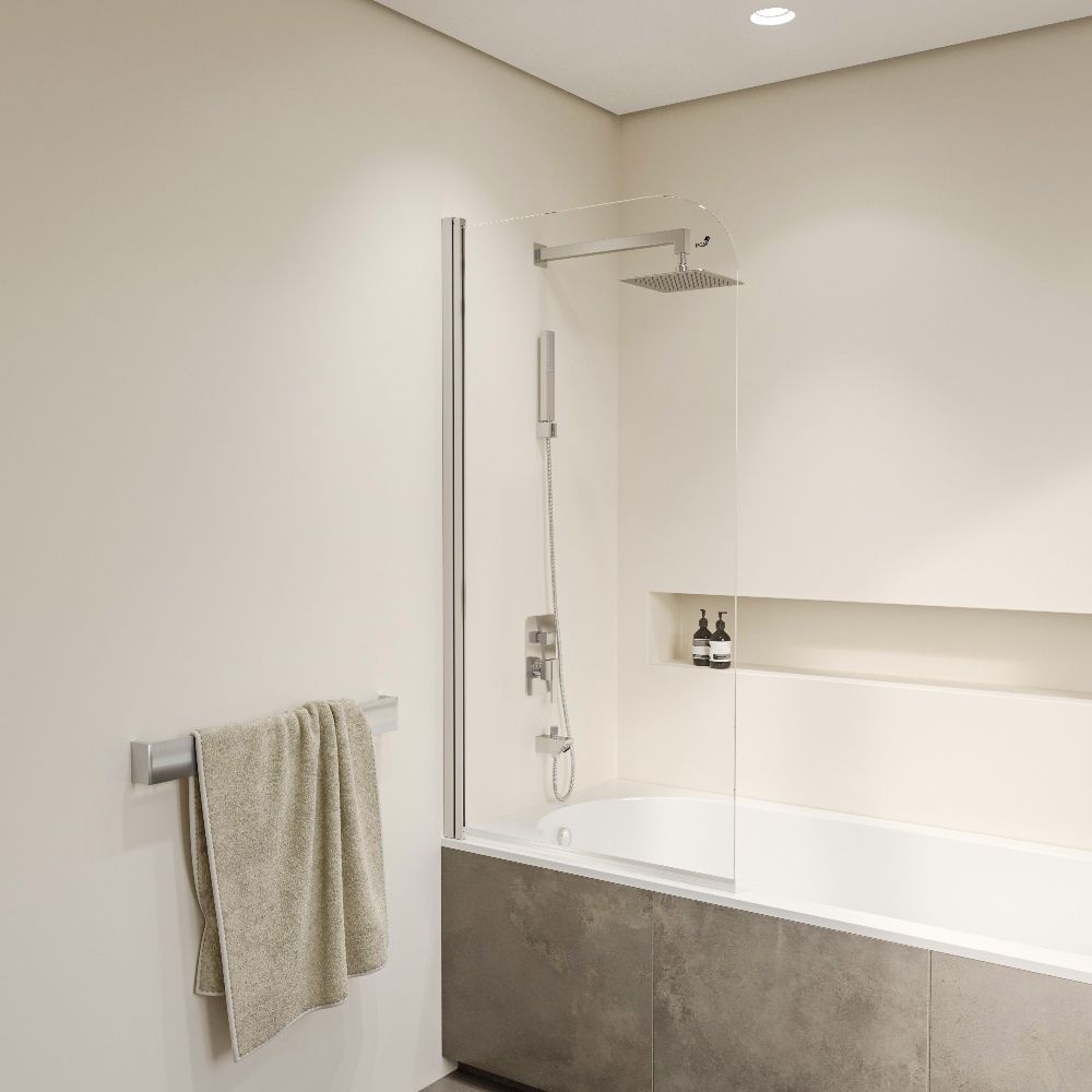 Высота стеклянной шторки составляет 1400 мм, что идеально подходит для большинства ванных комнат. Она максимально защитит вас и вашу ванную от брызг и воды.
