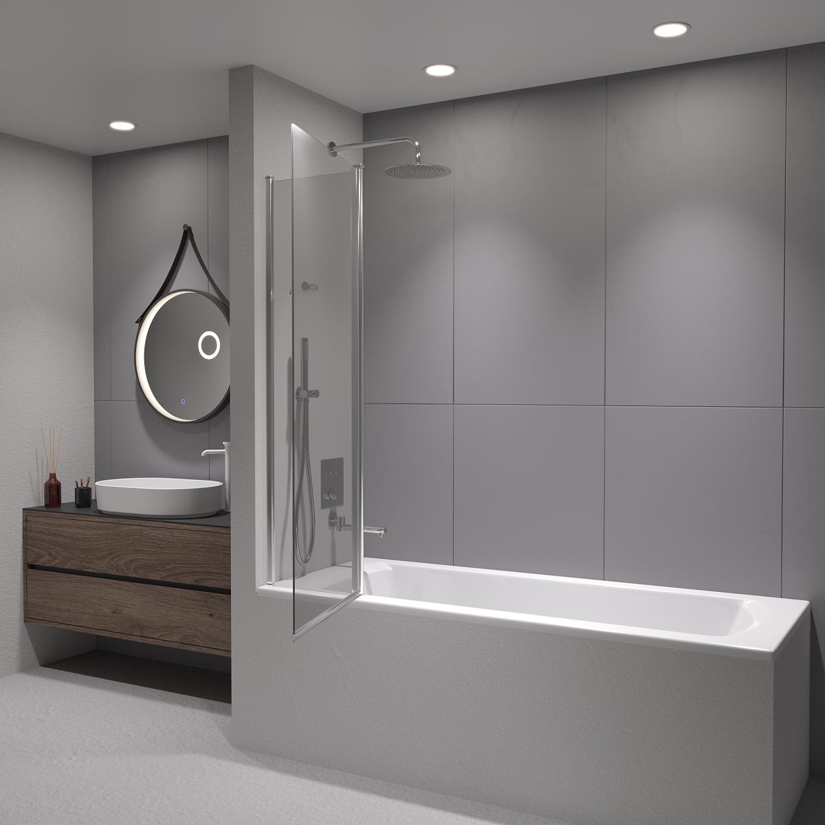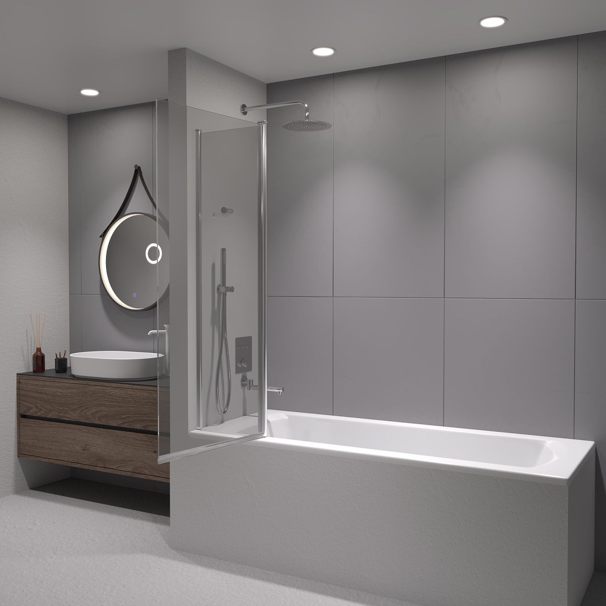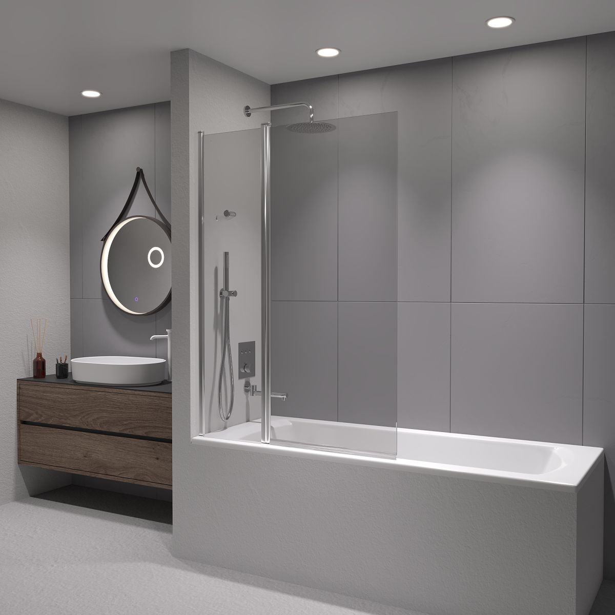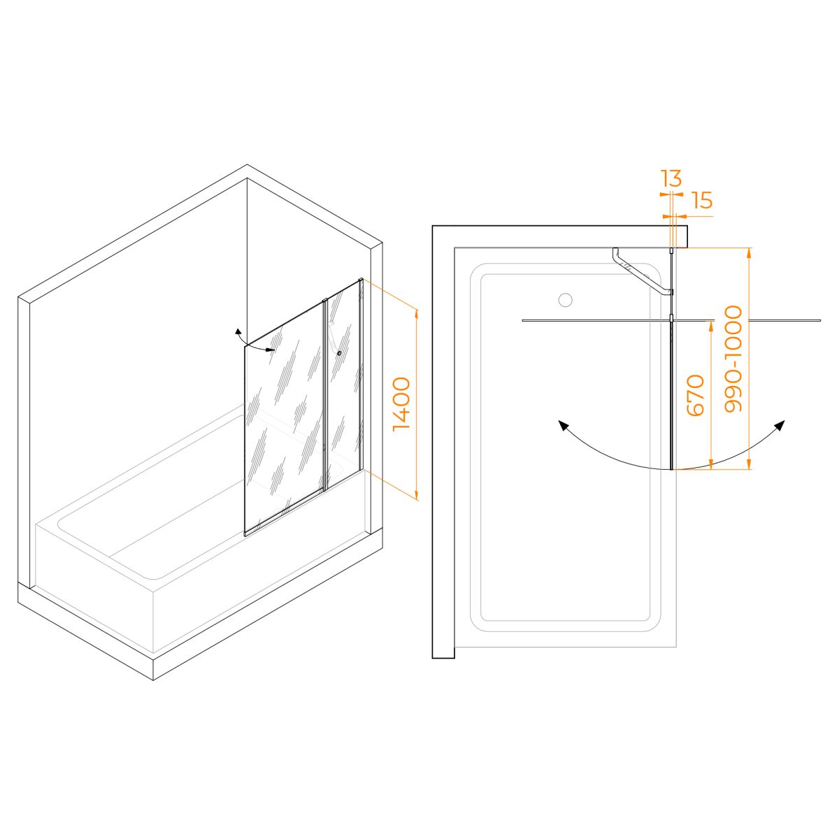 Цвет профиля шторки хром, что придает ей более современный внешний вид. Высота стеклянной шторки 1400 мм, которая идеально подходит для большинства ванн.