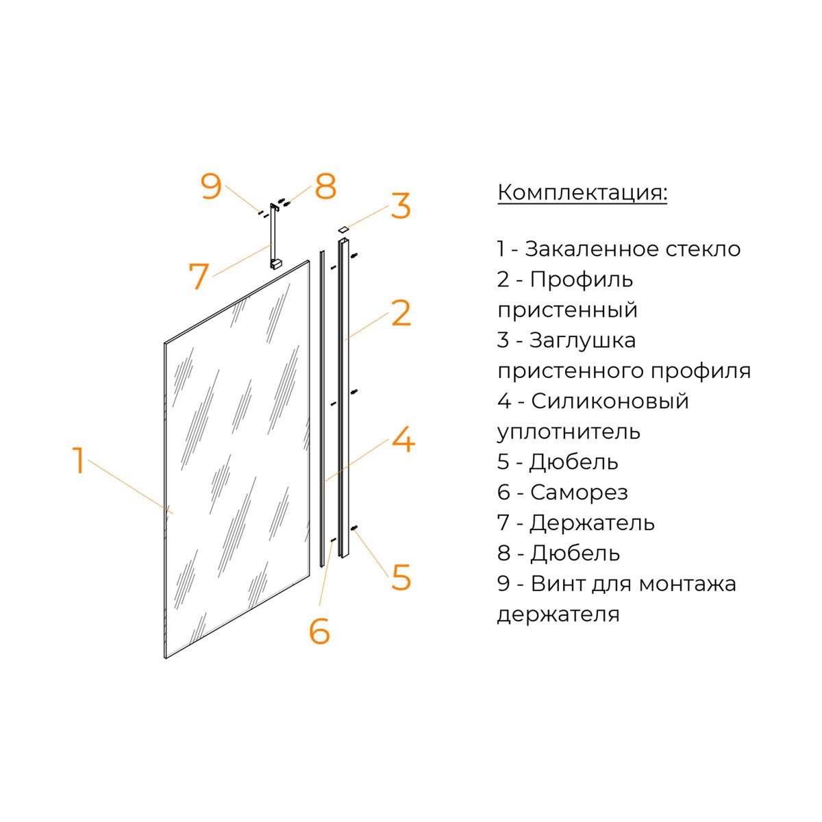 Изготовлена из прозрачного стекла толщиной 6 мм, шторка выполнена с черным анодированным алюминиевым профилем, который придает ей современный и эстетичный вид. Высота стеклянной шторки составляет 1500 мм, что обеспечивает надежную защиту от брызг воды и сохраняет чистоту ванной комнаты.