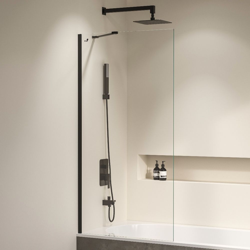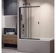 Изготовлена из прозрачного стекла толщиной 6 мм, шторка выполнена с черным анодированным алюминиевым профилем, который придает ей современный и эстетичный вид. Высота стеклянной шторки составляет 1500 мм, что обеспечивает надежную защиту от брызг воды и сохраняет чистоту ванной комнаты.