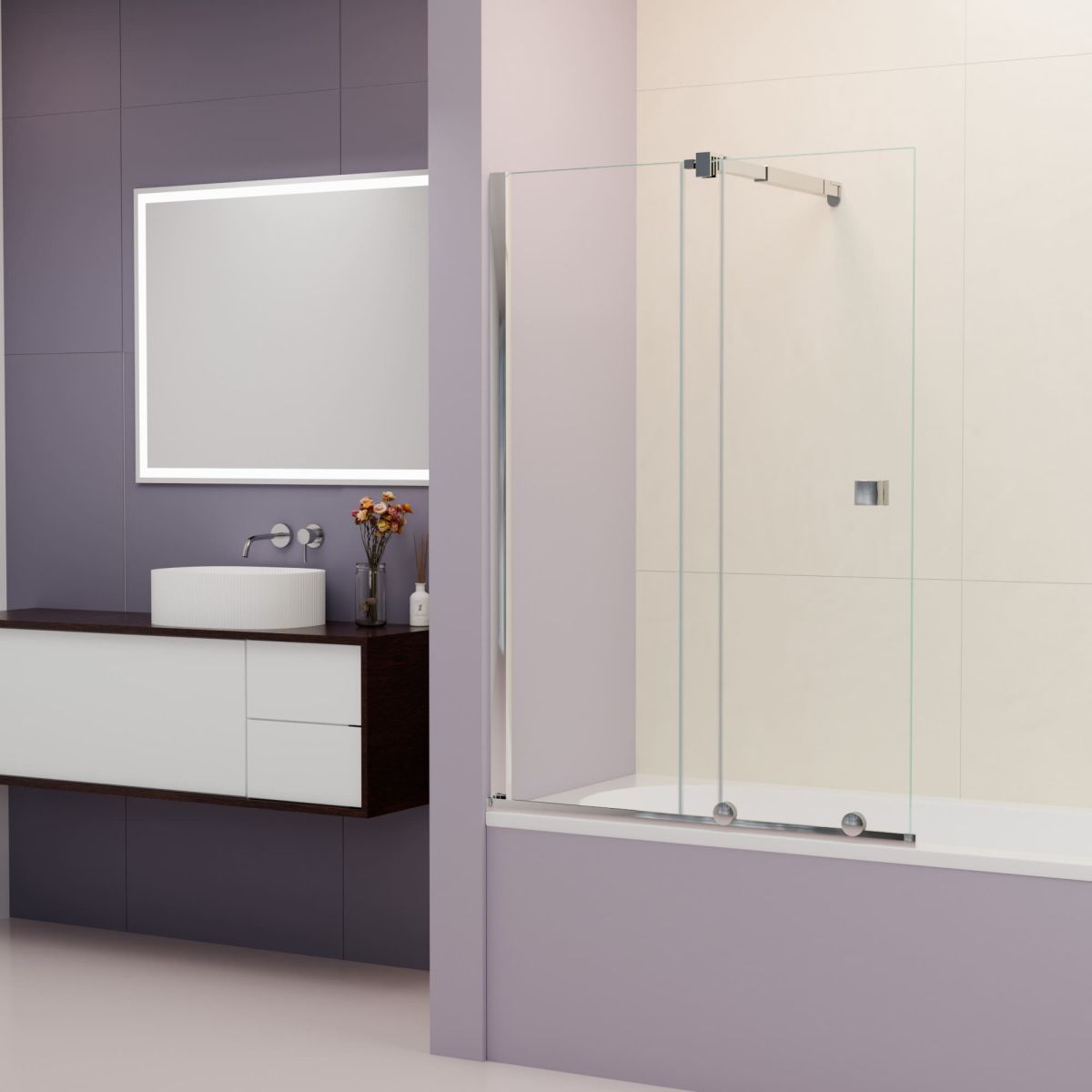 Стеклянная перегородка на борт ванны с механизмом движения стеклянных полотен «Sliding wall» (в переводе «Выдвижная стена») от компании RGW «Стильные Душевые» разработана для классических прямоугольных ванн, монтаж на борт ванны.