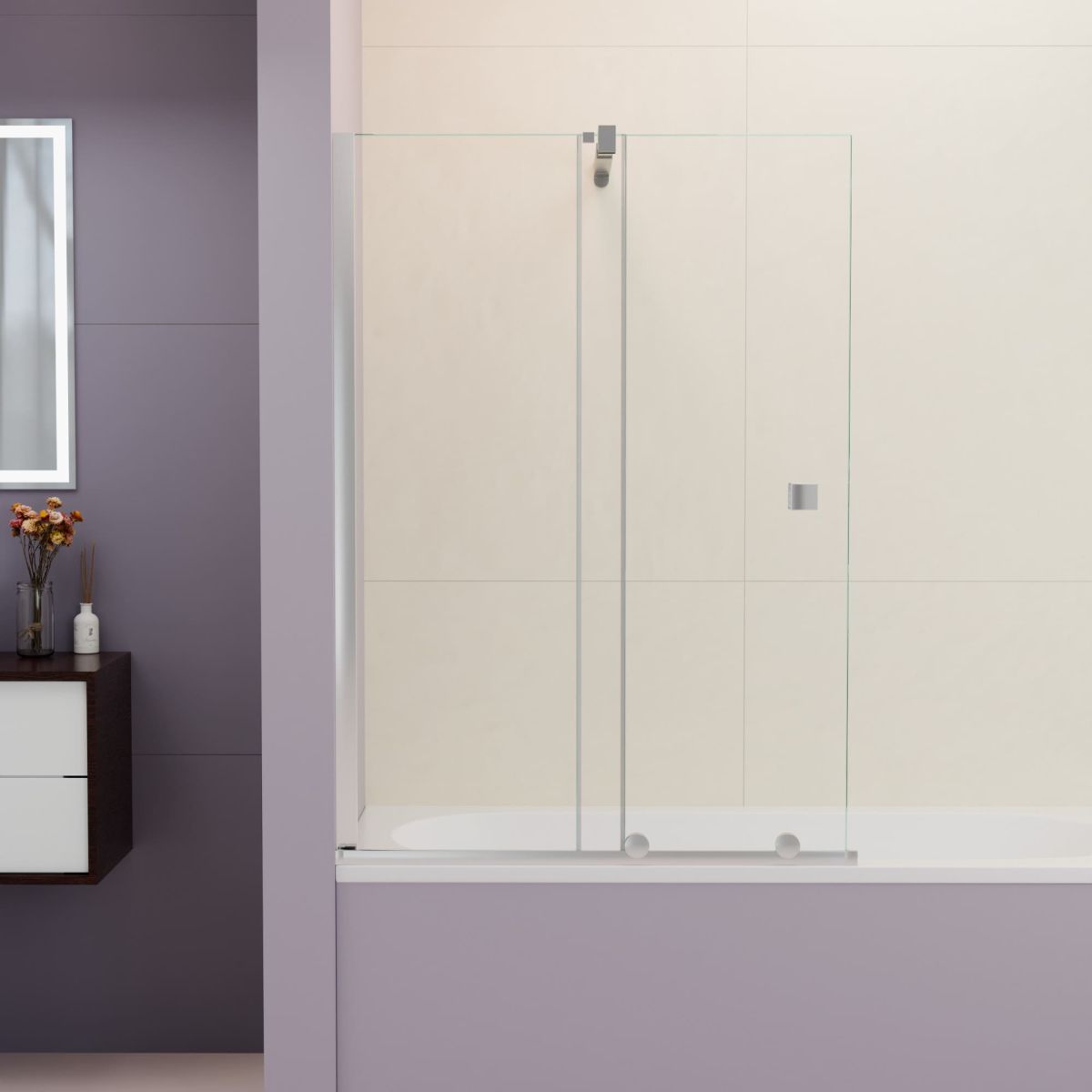 Стеклянная шторка RGW SC-46 - двух сегментная, состоит из стационарного полотна и полотна с подвижной частью изменения размера ограждающей конструкции ванны.
