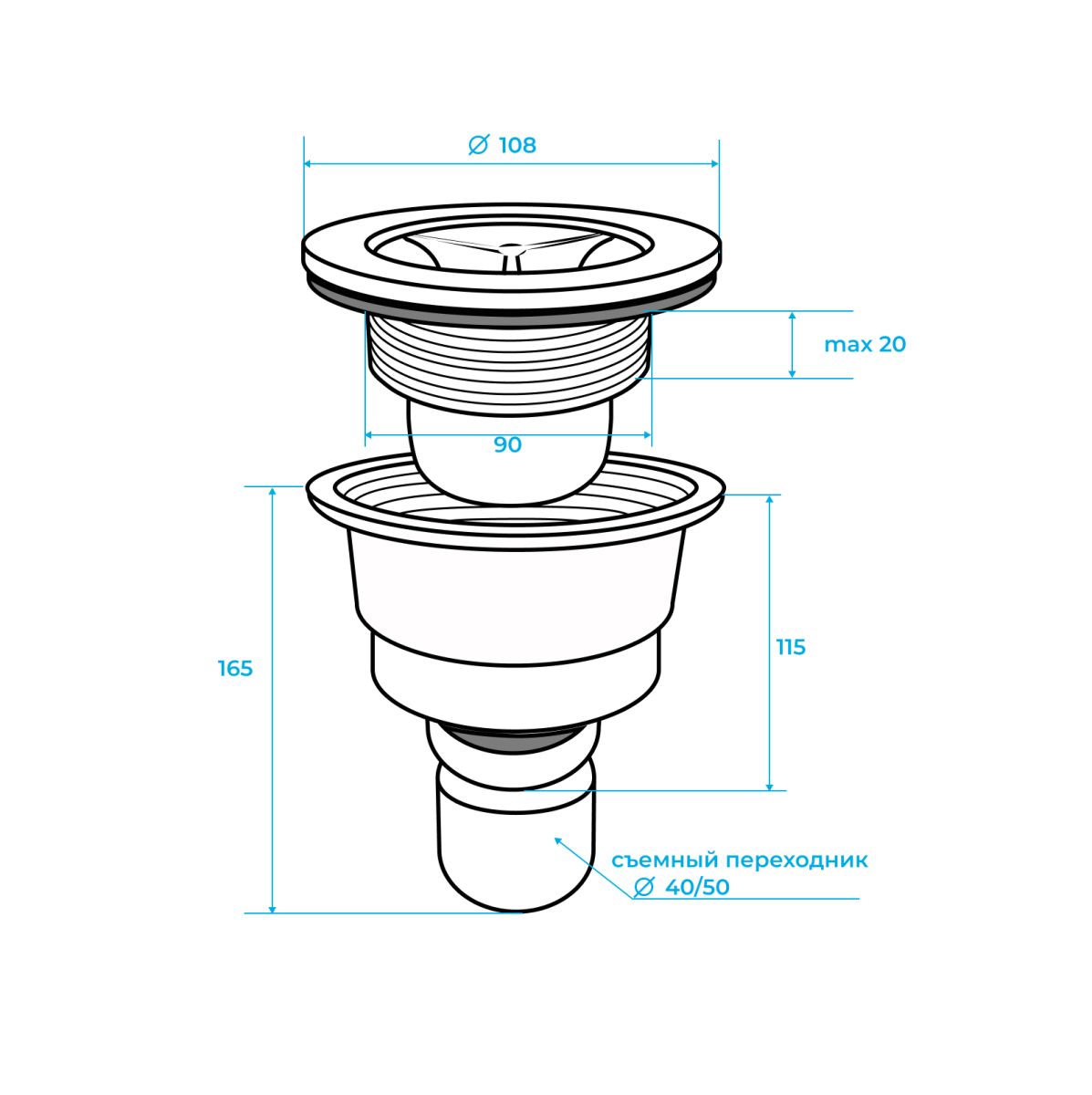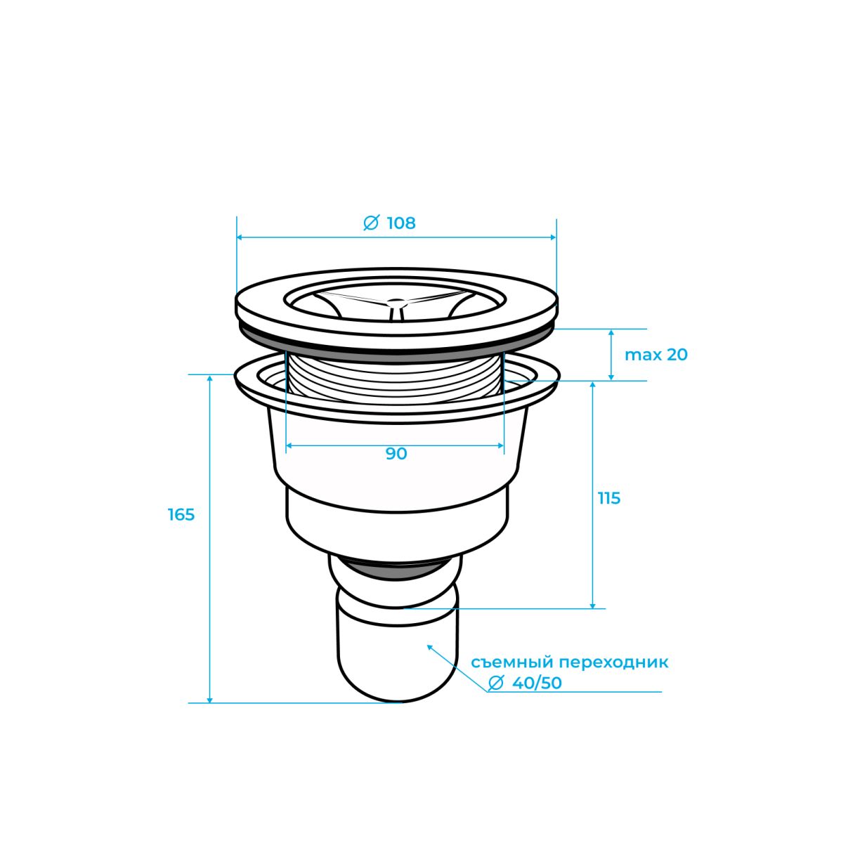 Диаметр подключения сифона: