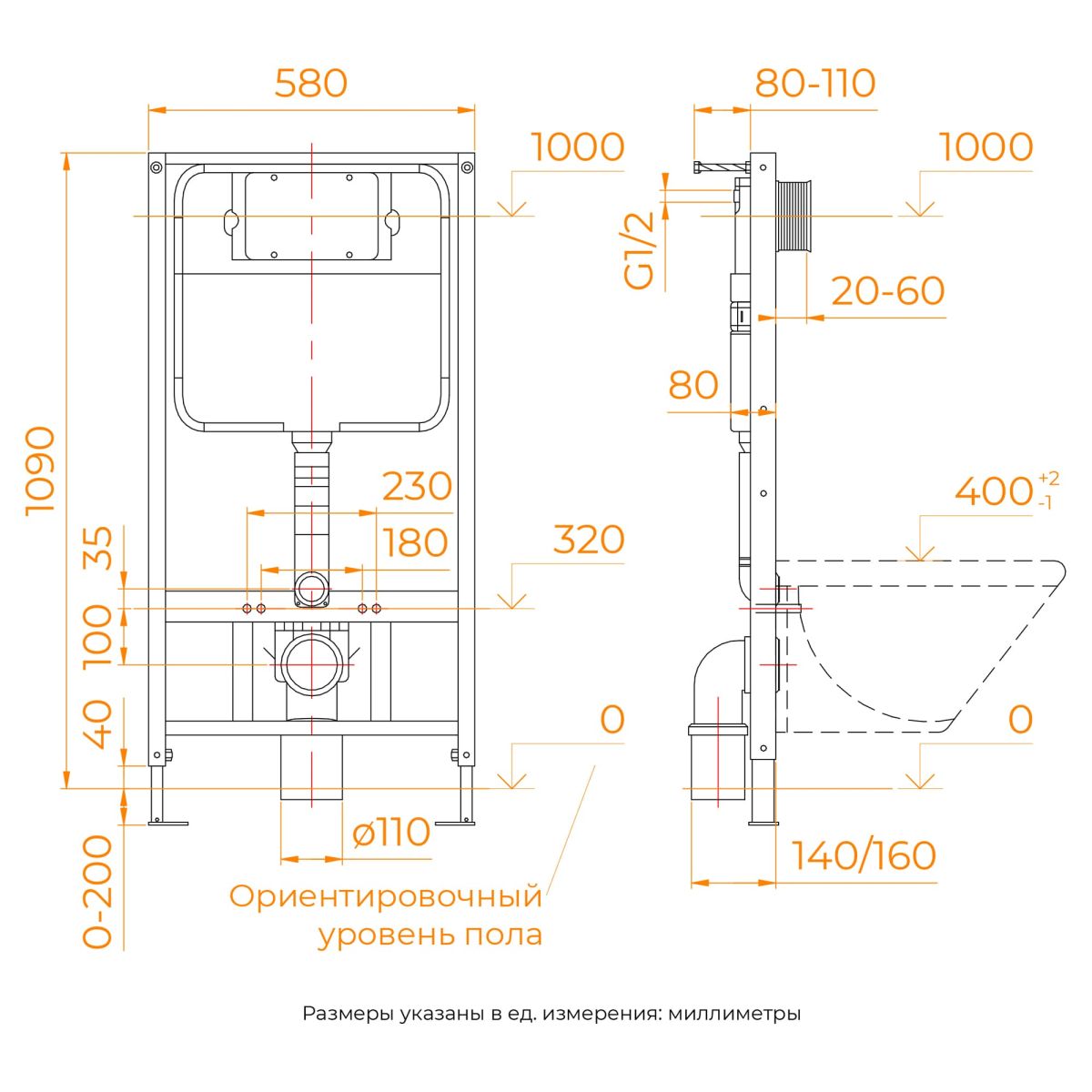 Система инсталляции для подвесного унитаза RGW SWI-03: