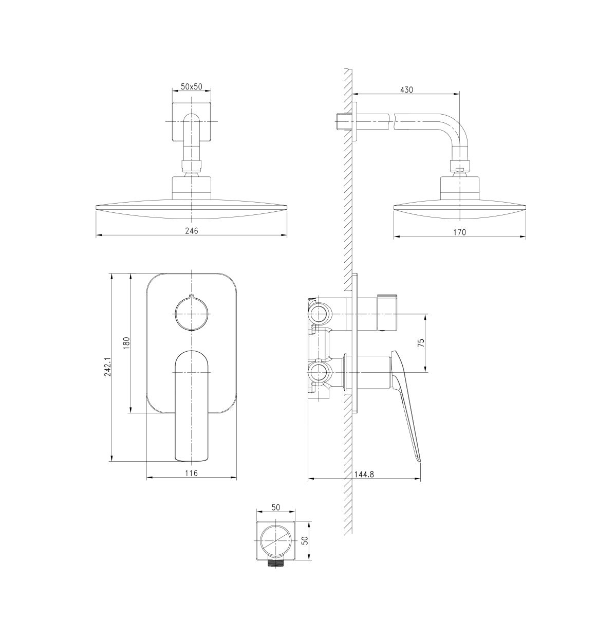 • Держатель верхней душевой лейки 430 мм
