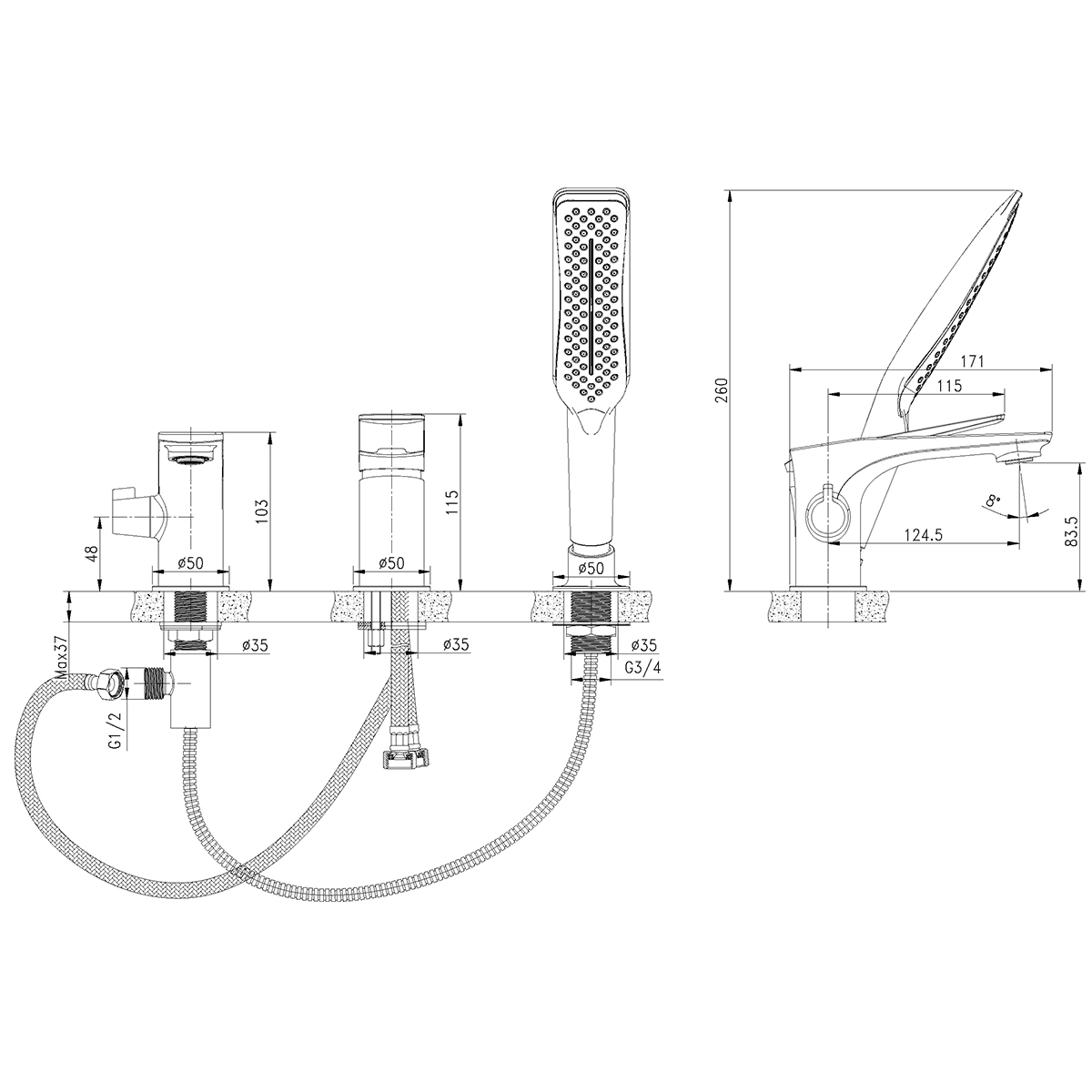 - Аксессуары в комплекте: шланг 2 м, свинцовый отвес, 1-функциональная лейка 53х266 мм