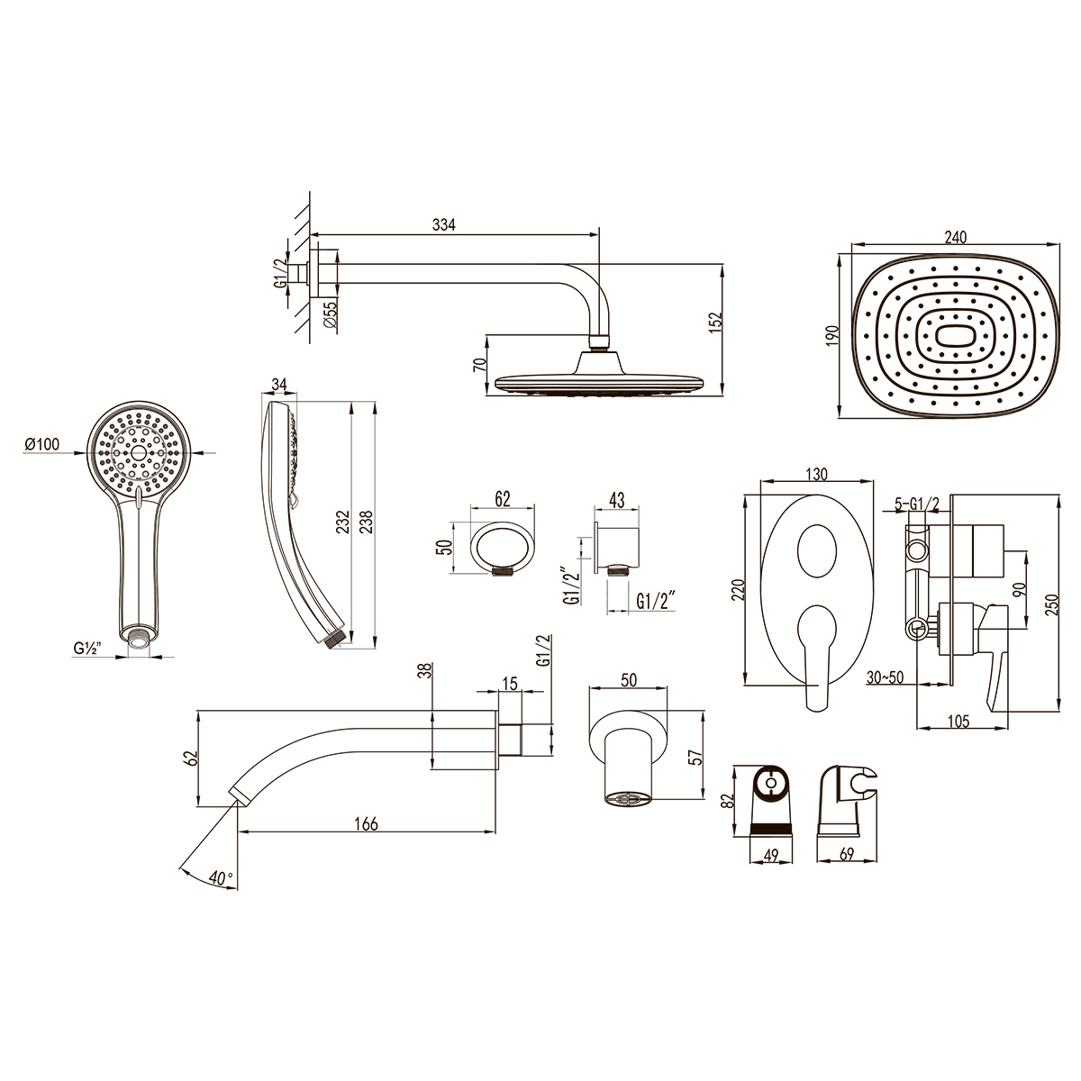 - Верхняя поворотная душевая лейка «Тропический дождь» 190х240 мм