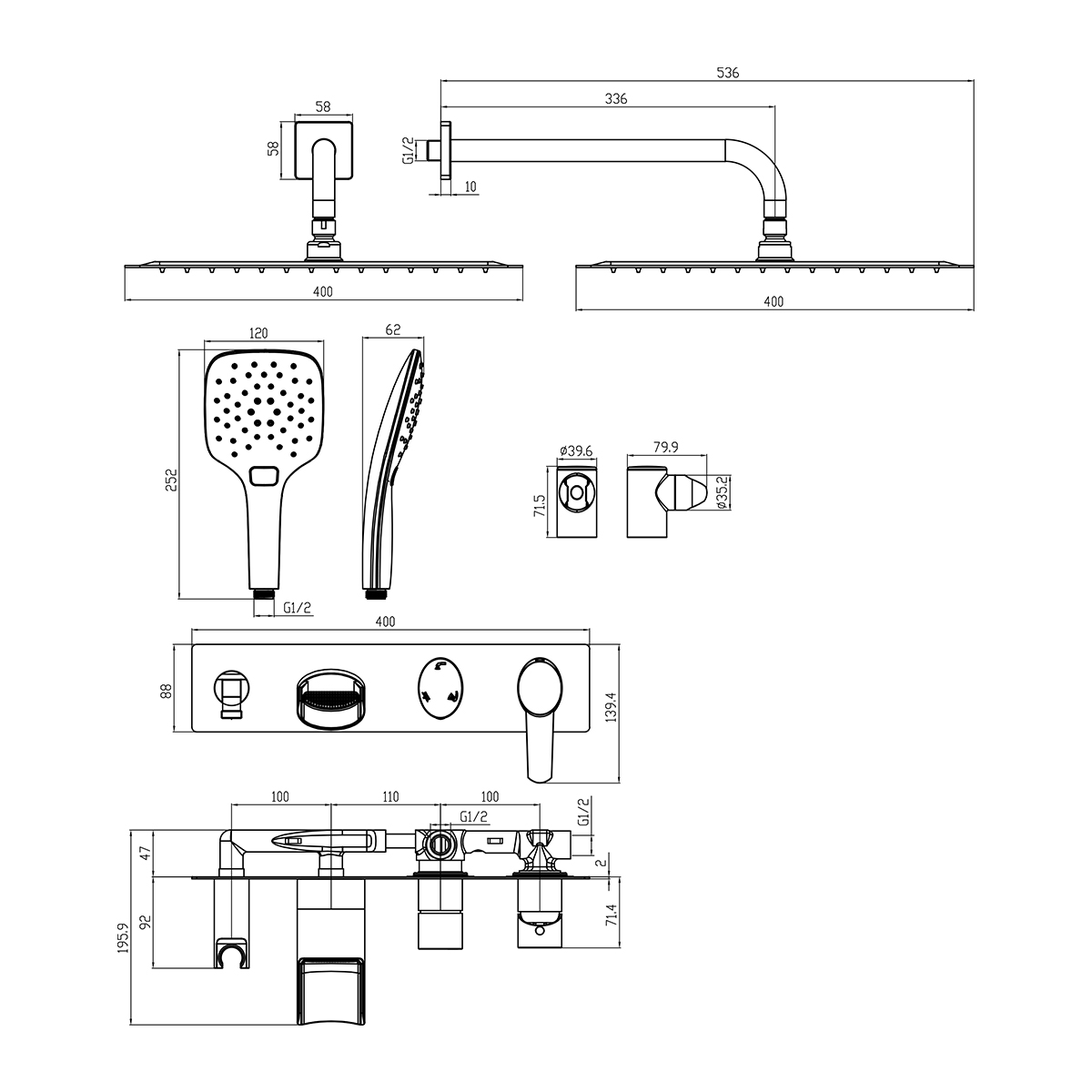 • Верхняя поворотная душевая лейка «Тропический дождь» 400х400 мм