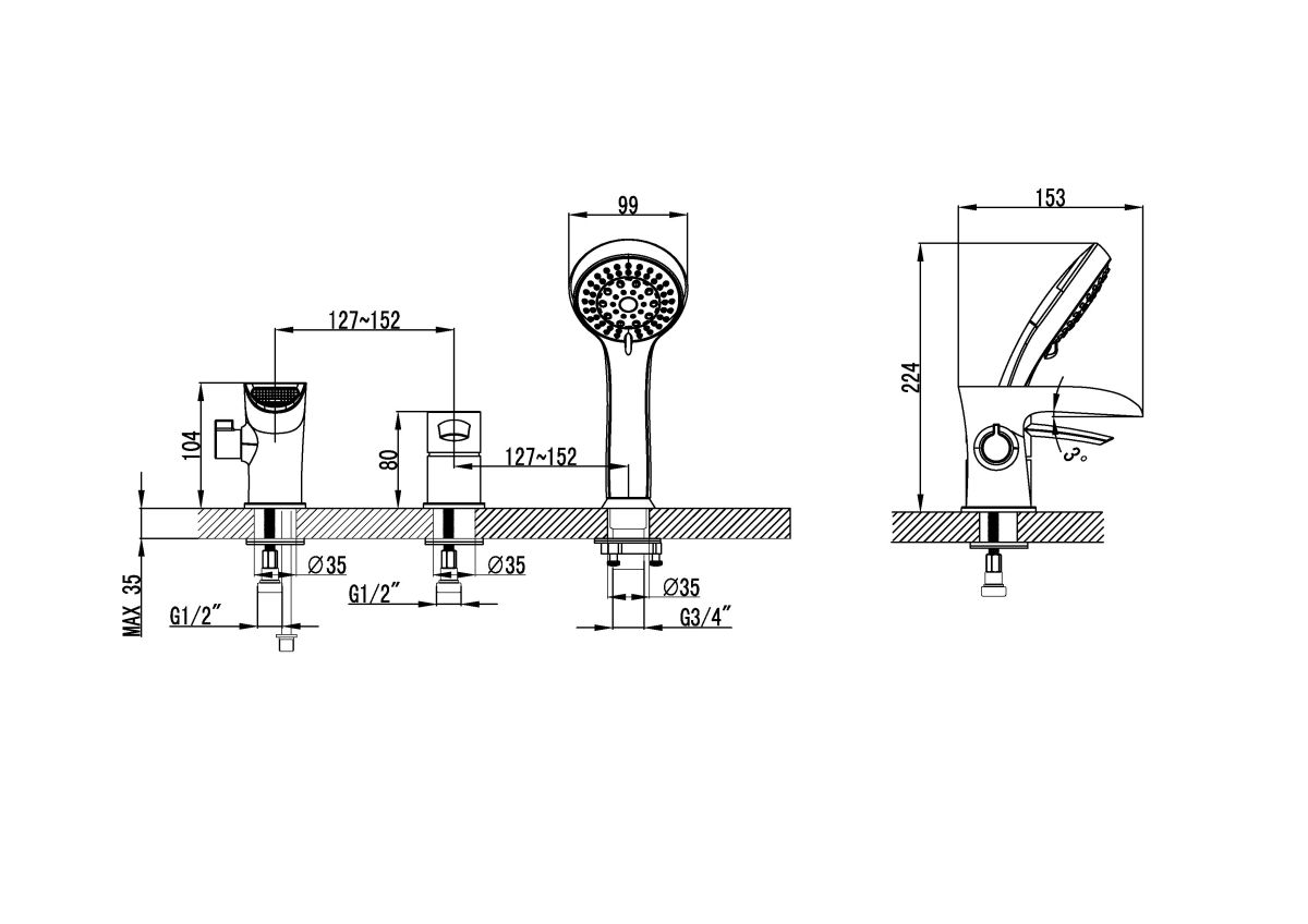 Смеситель Lemark Atlantiss LM3245C на борт ванны