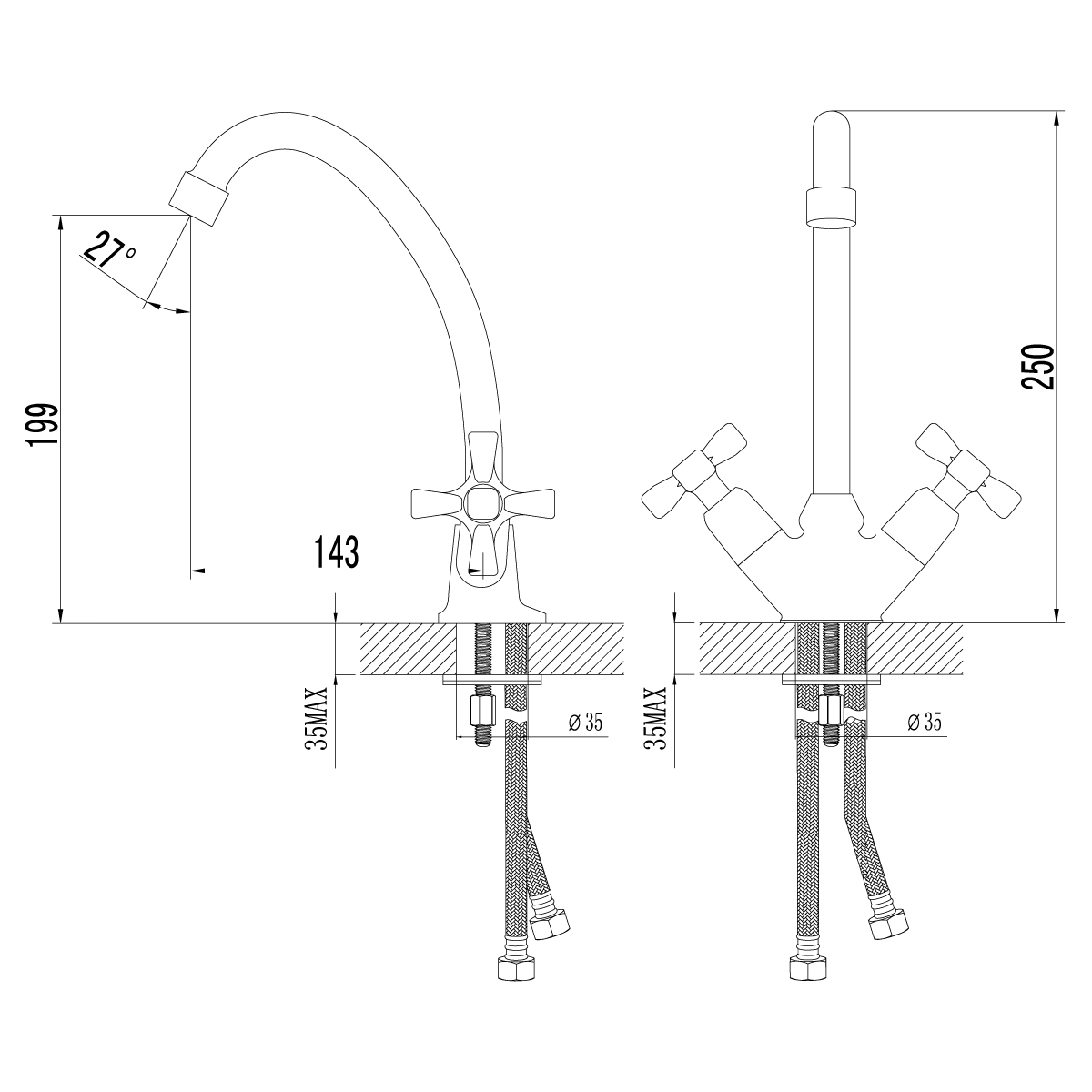 BENEFIT - "два плюса в ваших руках". Смесители этой серии идут в 2-х ручковом крестообразном исполнении.