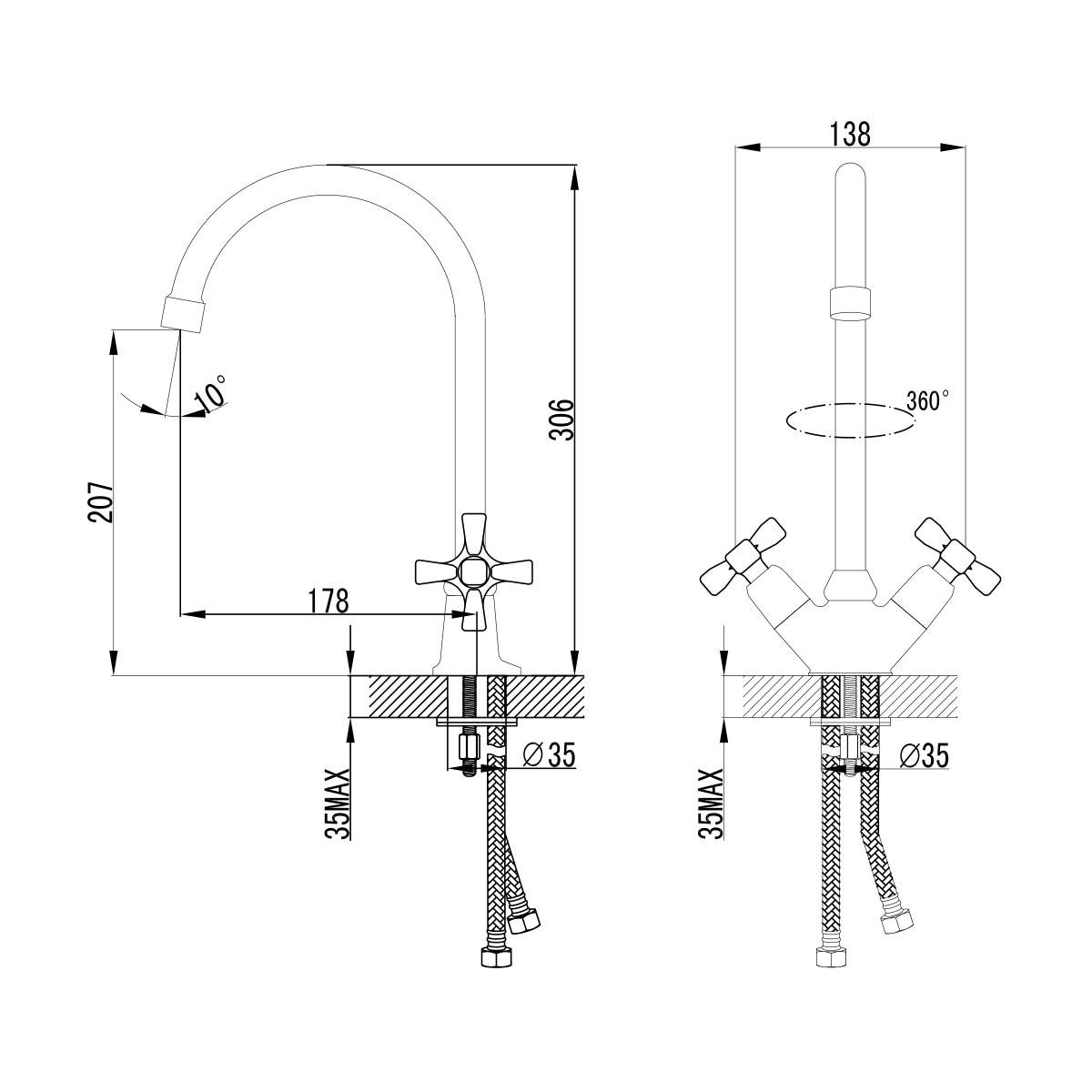 BENEFIT - "два плюса в ваших руках". Смесители этой серии идут в 2-х ручковом крестообразном исполнении.