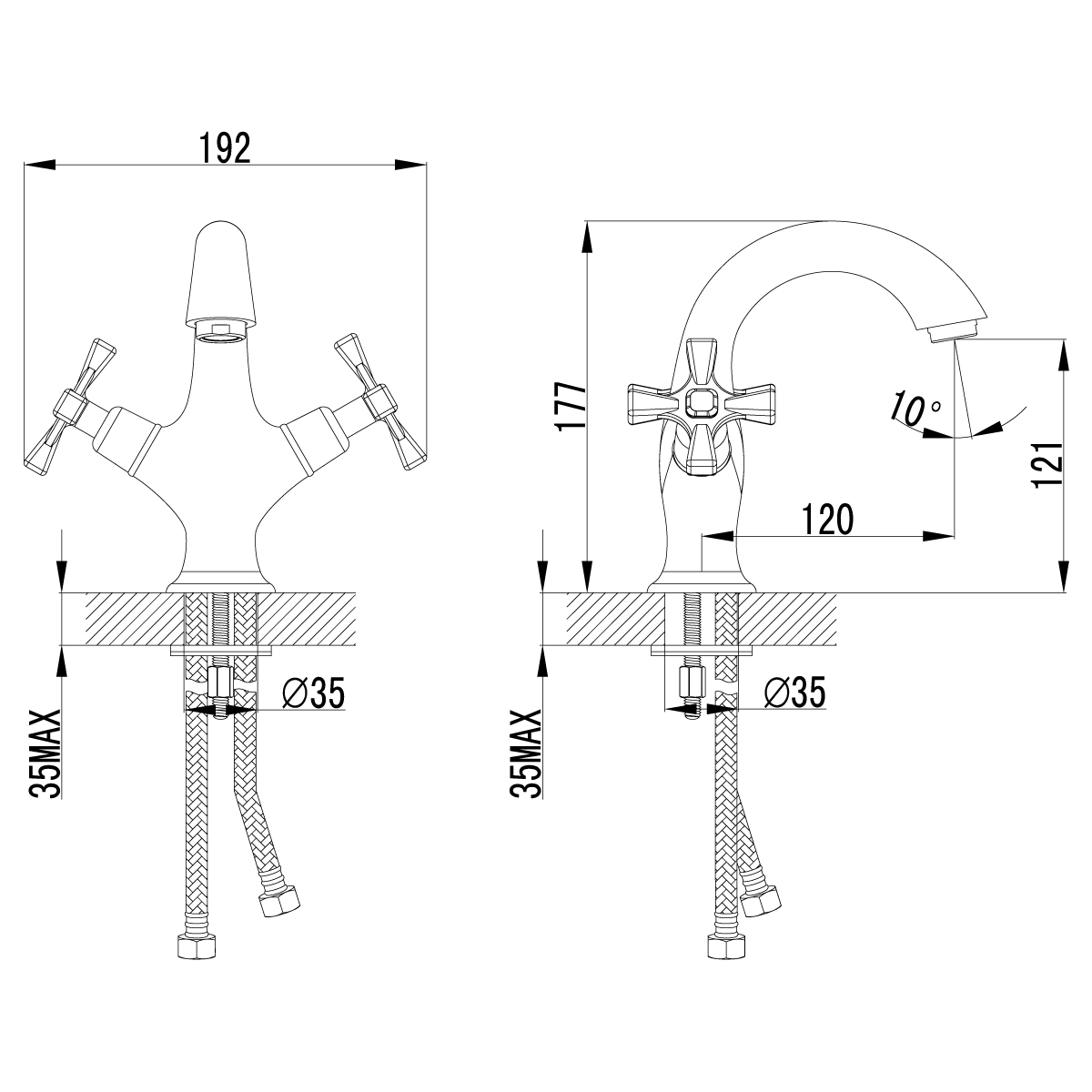 BENEFIT - "два плюса в ваших руках". Смесители этой серии идут в 2-х ручковом крестообразном исполнении.