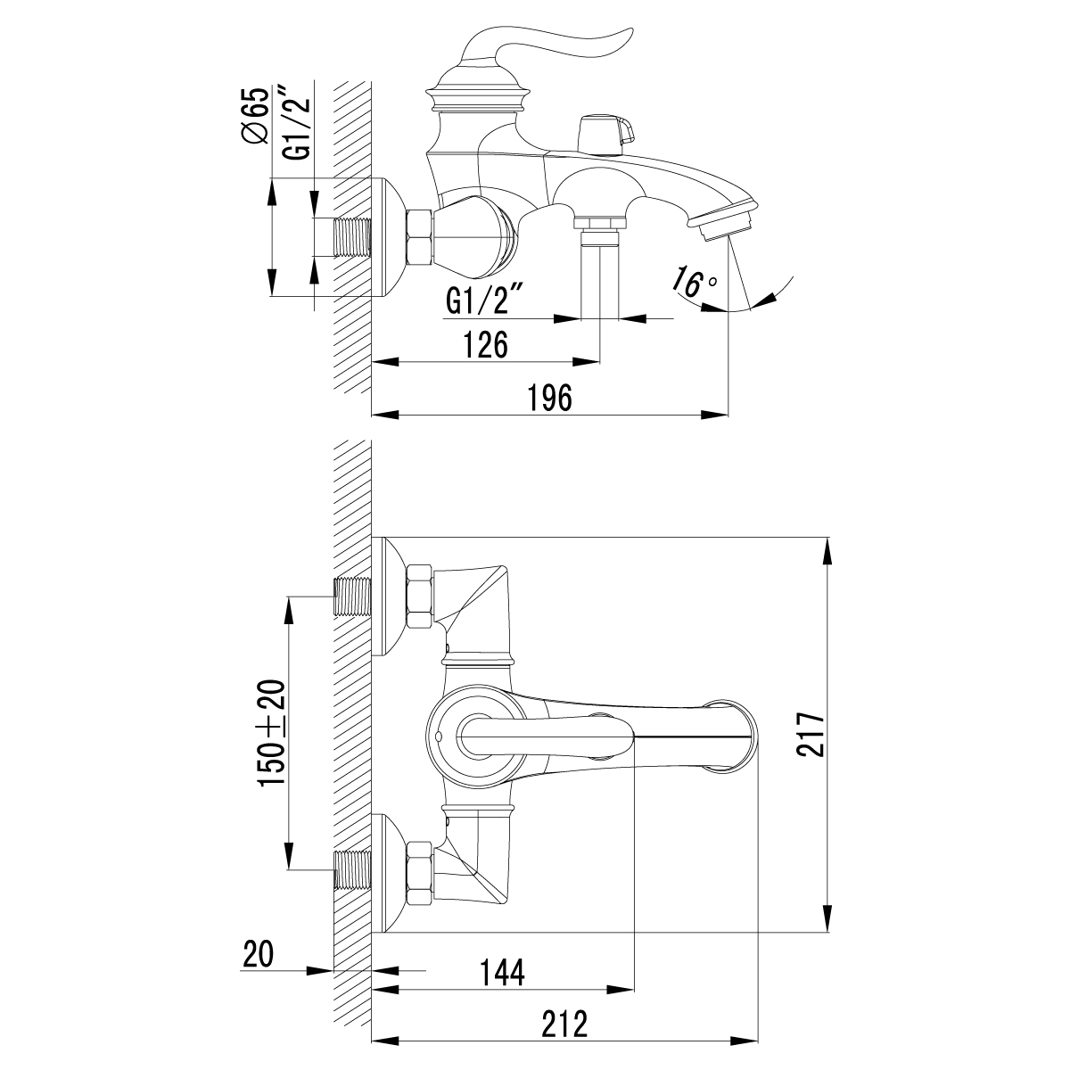 - Присоединительная группа для настенного крепления ½”