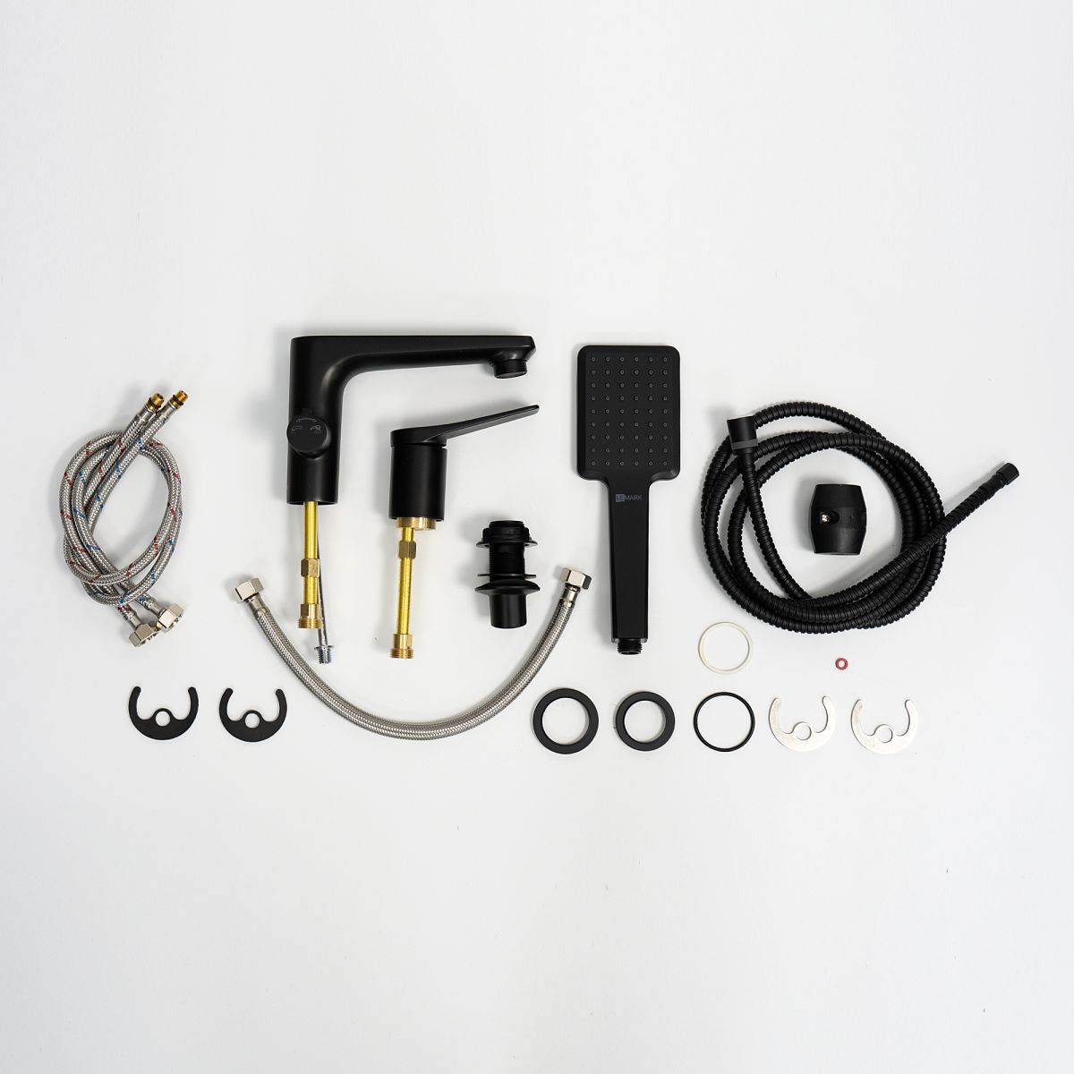 • Аксессуары в комплекте: шланг 2 м (Turn-Free), свинцовый отвес, 1-функциональная лейка 86x258 мм
