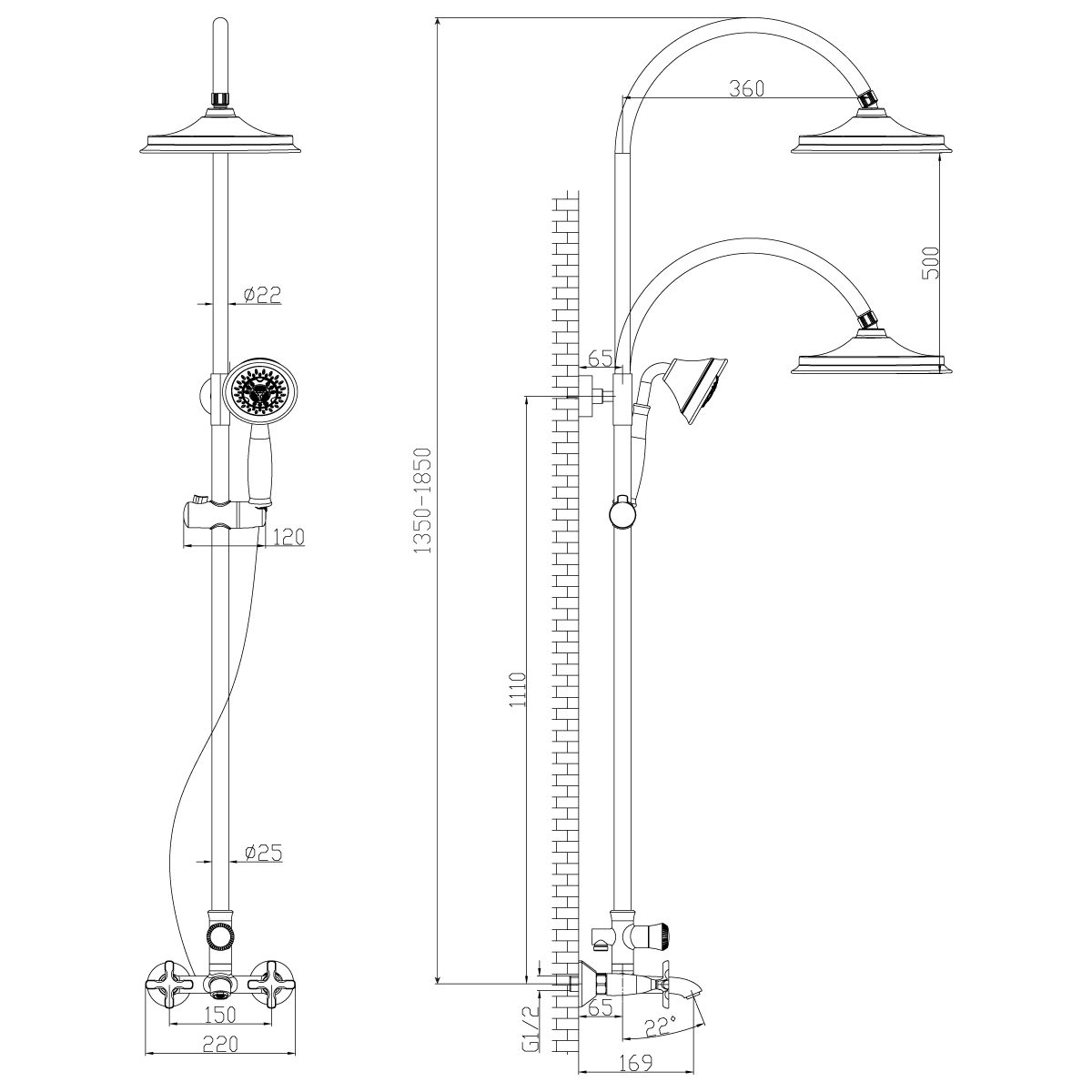 - Верхняя поворотная душевая лейка «Тропический дождь» Ø228 мм