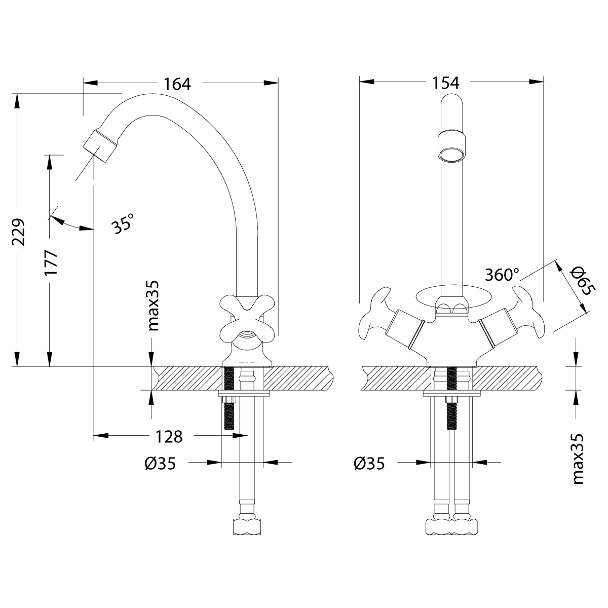 - Кран-буксы с керамическими пластинами (угол поворота – 90°)
