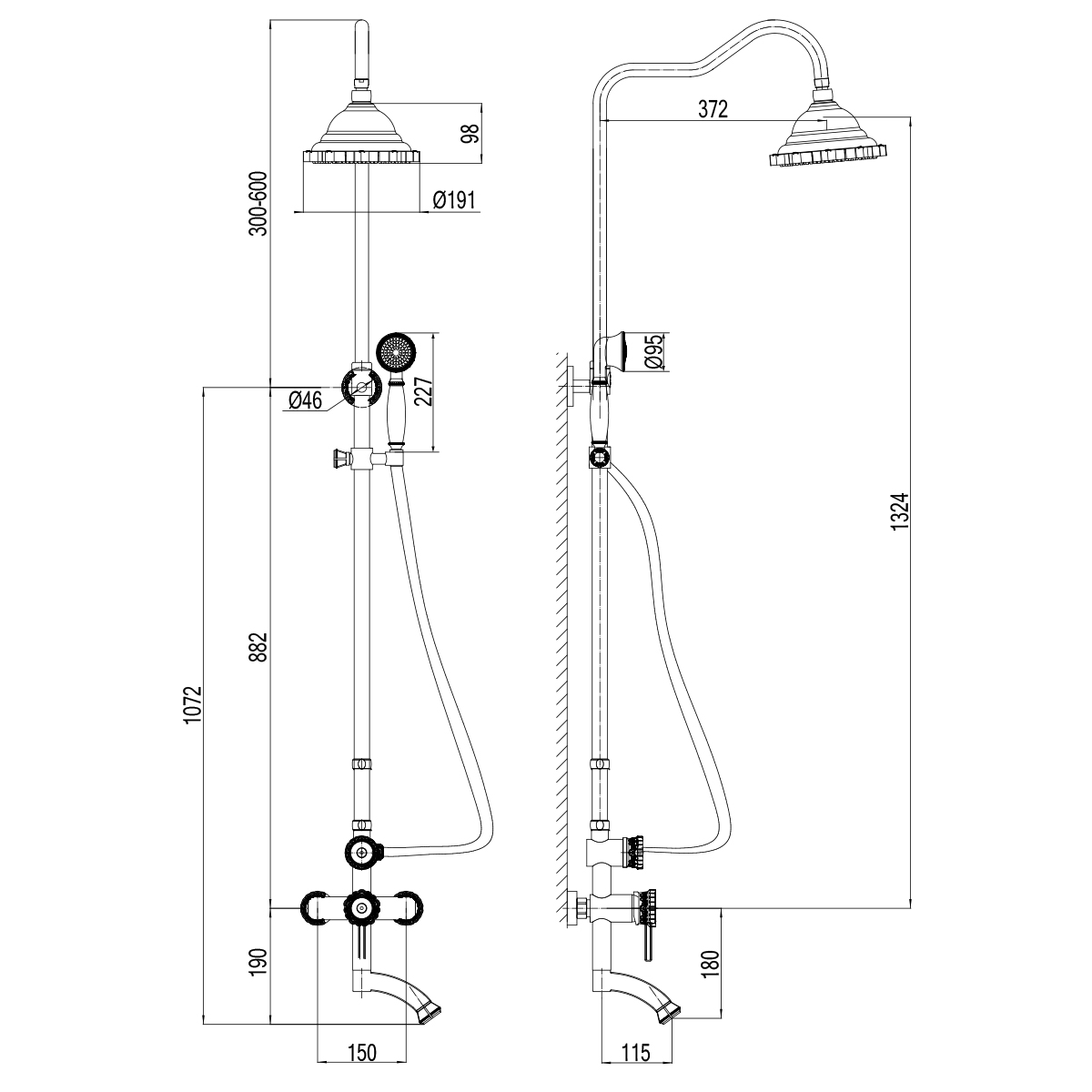 • Регулируемое по высоте крепление для лейки