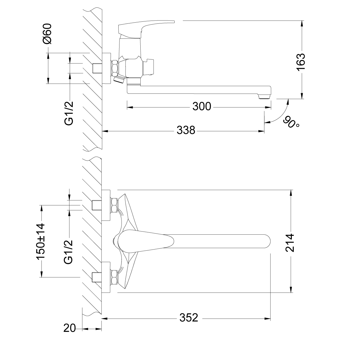 - Аксессуары в комплекте: шланг 1,5 м, 1-функциональная лейка Ø100х225 мм, настенное поворотное крепление