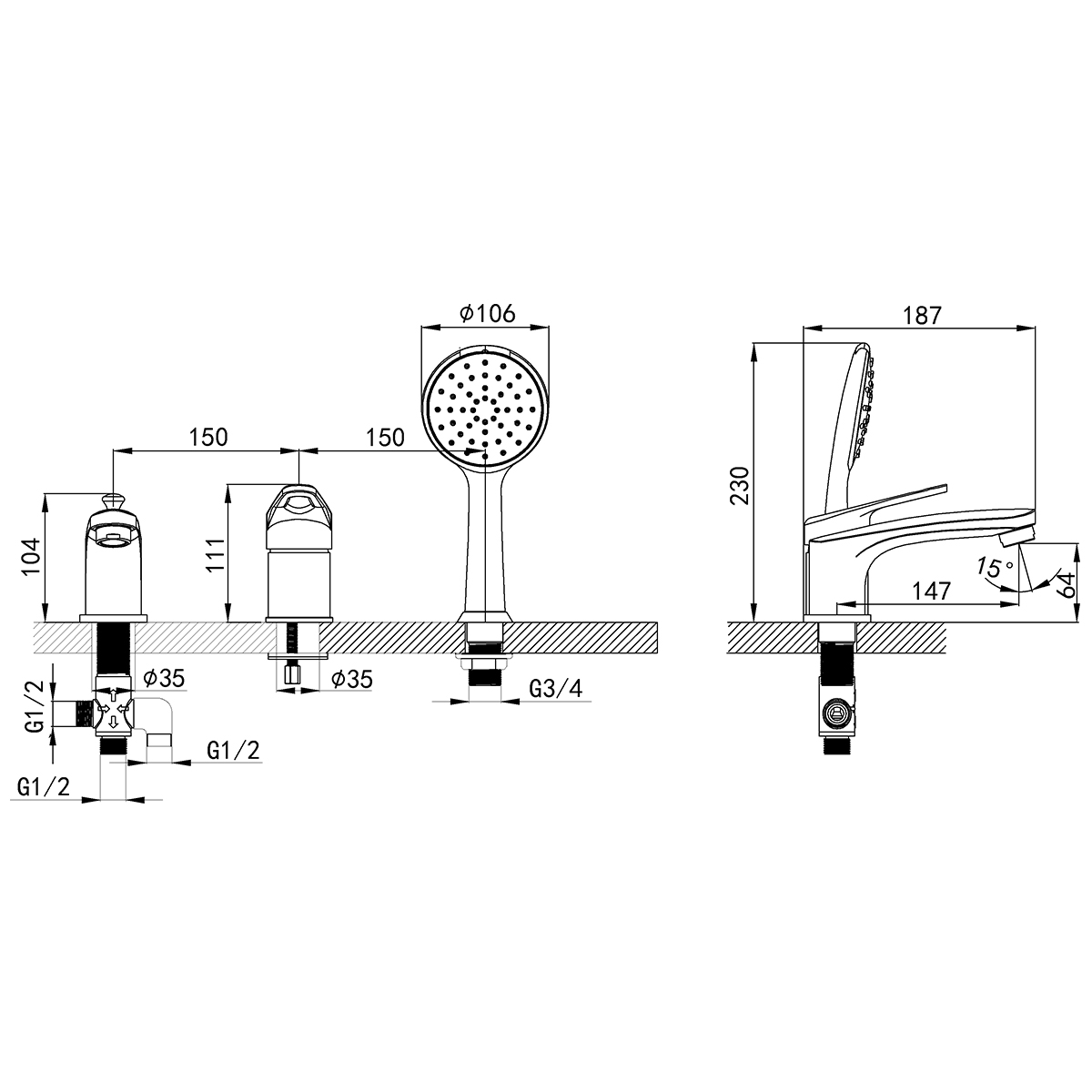- Аксессуары в комплекте: шланг 2 м, свинцовый отвес, 1-функциональная лейка Ø106х235 мм