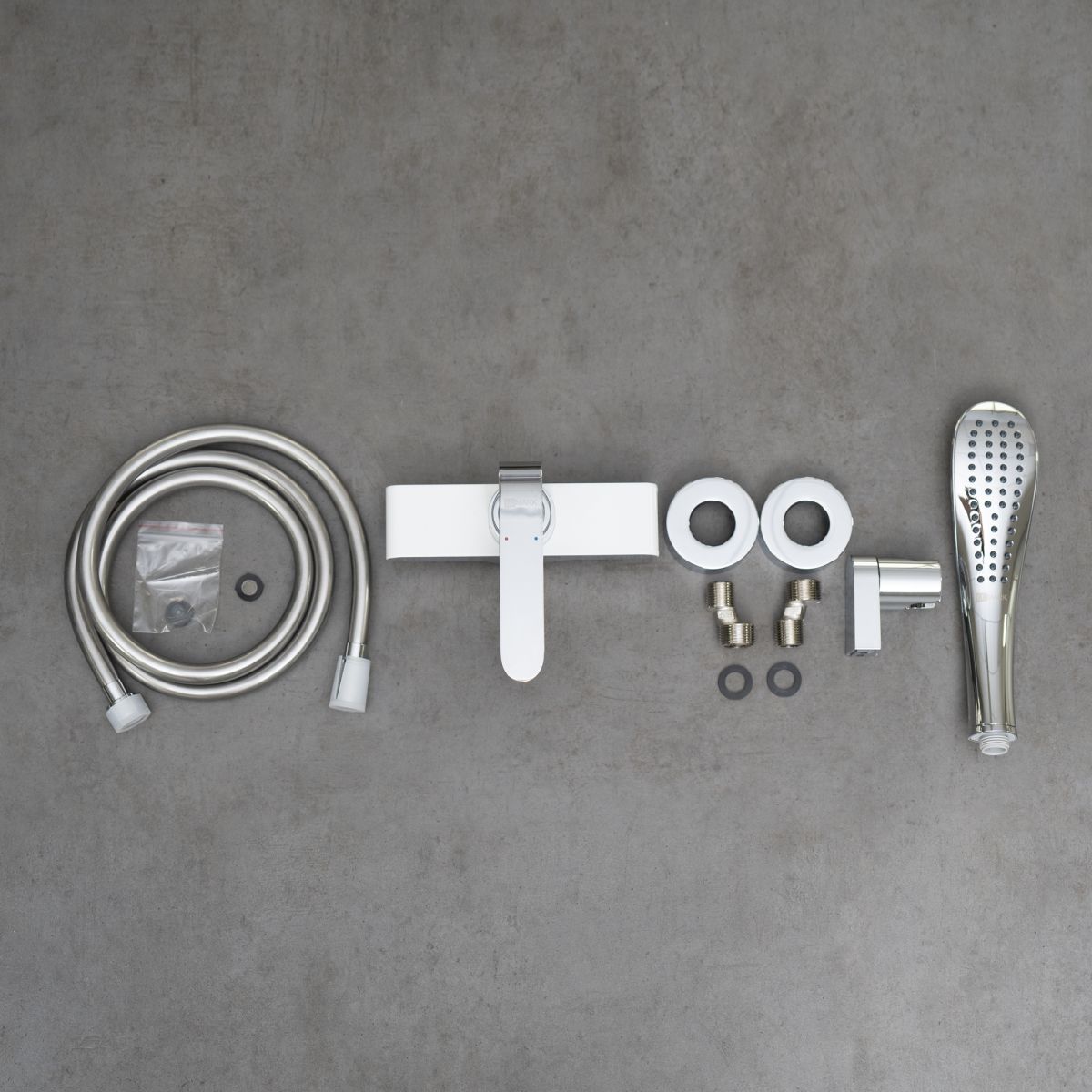- Аксессуары в комплекте: душевой шланг ПВХ 1,5 м, 1-функциональная лейка 62x249 мм, настенное поворотное крепление