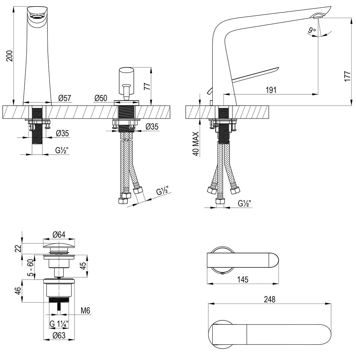 - Гибкая подводка ½” 60 см