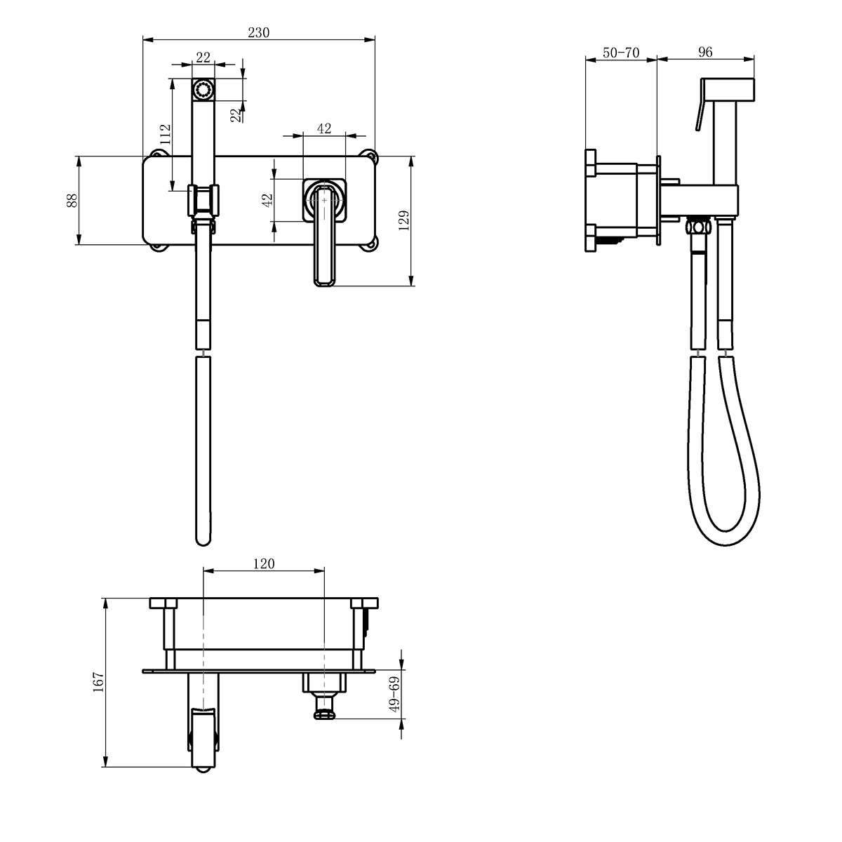 • Аксессуары в комплекте: лейка для биде с нажимным механизмом, шланг 1,2 м