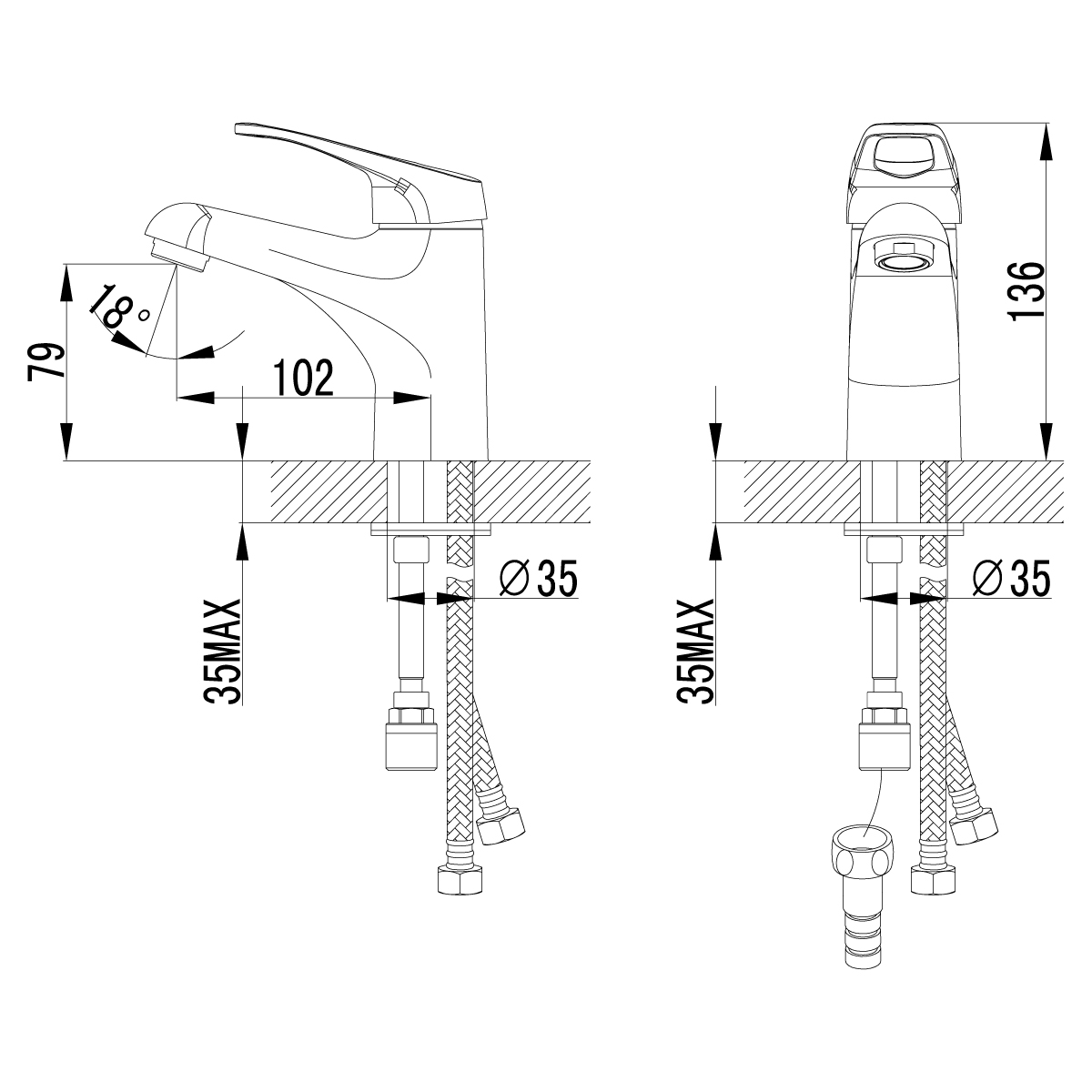 - Гибкая подводка ½” 35 см