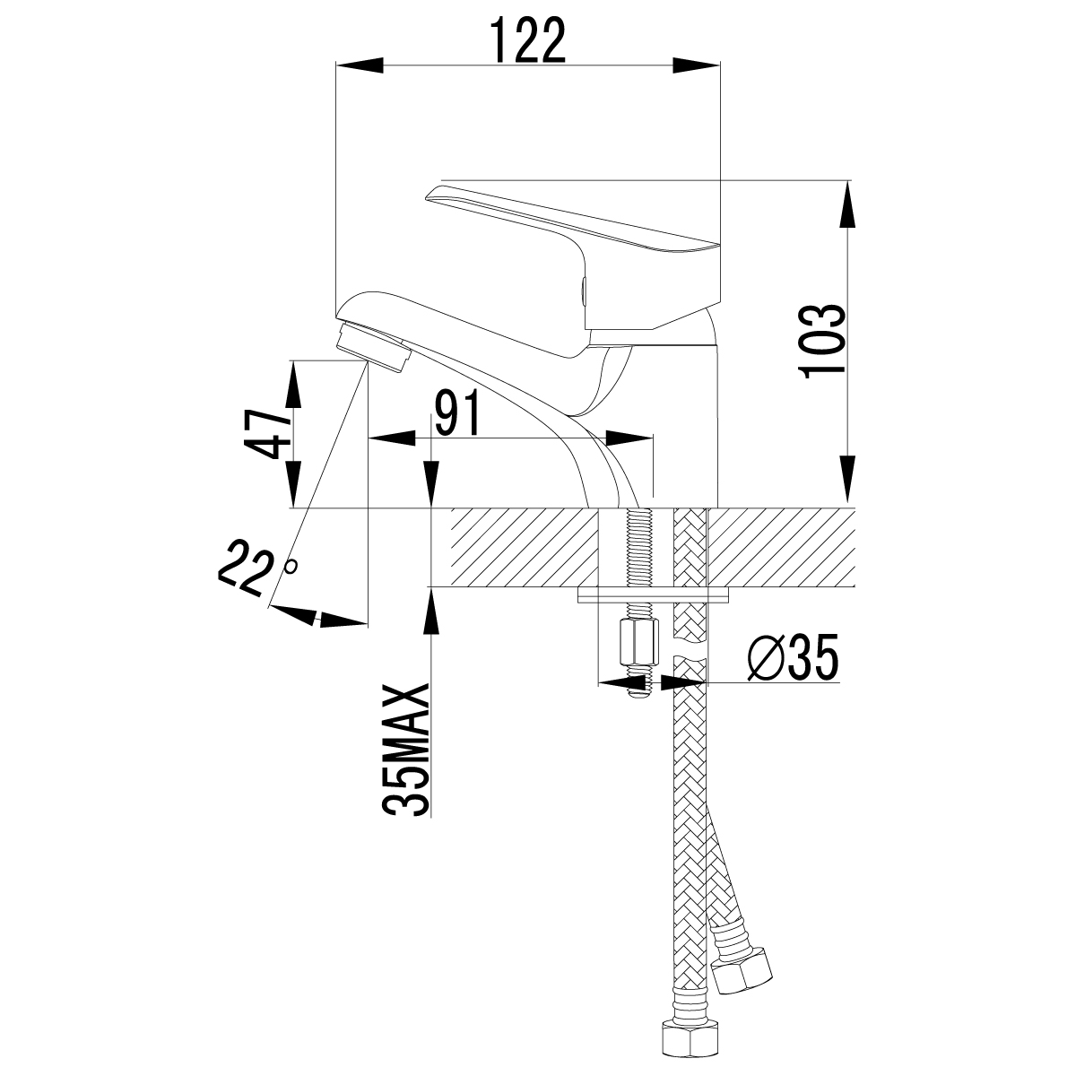 - Гибкая подводка ½” 35 см