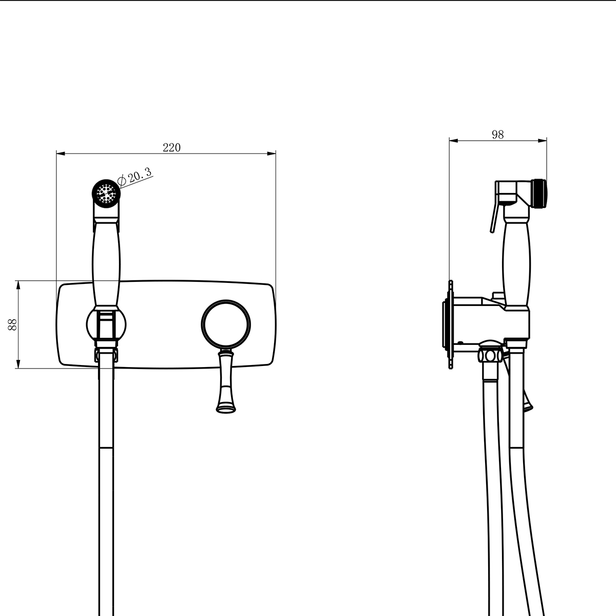- Аксессуары в комплекте: лейка для биде с нажимным механизмом, шланг 1,2 м