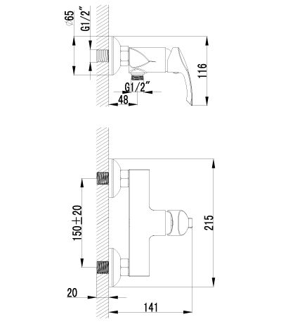 - Аксессуары в комплекте: шланг 1,5 м, 1-функциональная лейка Ø106x235 мм, настенное фиксированное крепление