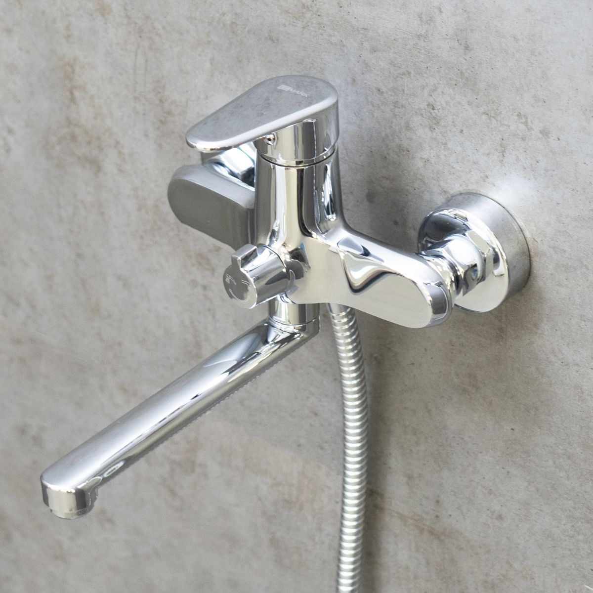 - Аксессуары в комплекте: шланг 1,5 м, настенное поворотное крепление, 1-функциональная лейка Ø100х225 мм