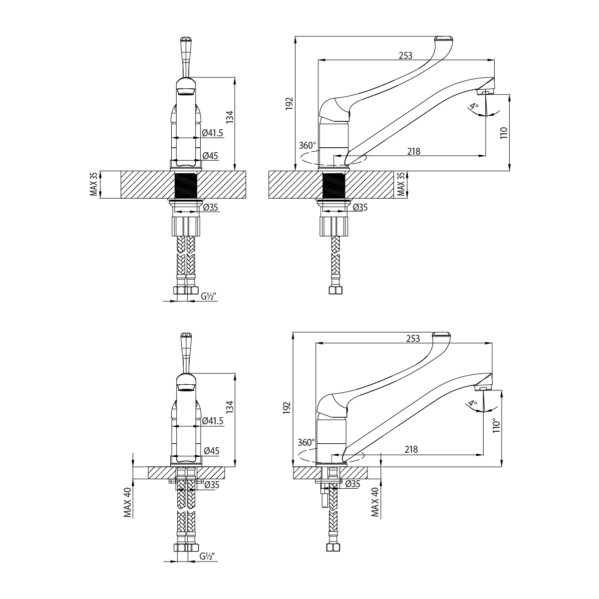 - Гибкая подводка ½” 35 см