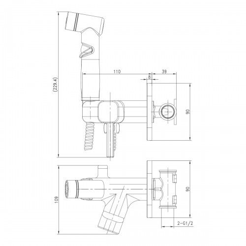 - Аксессуары в комплекте: лейка для биде с регулятором напора воды, шланг 1,2 м (Turn-Free)