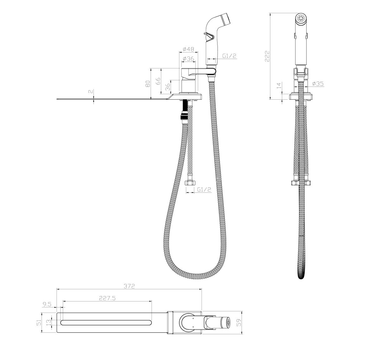 - Аксессуары в комплекте: лейка для биде с регулятором напора воды, шланг 0,9 мм (Turn-Free)