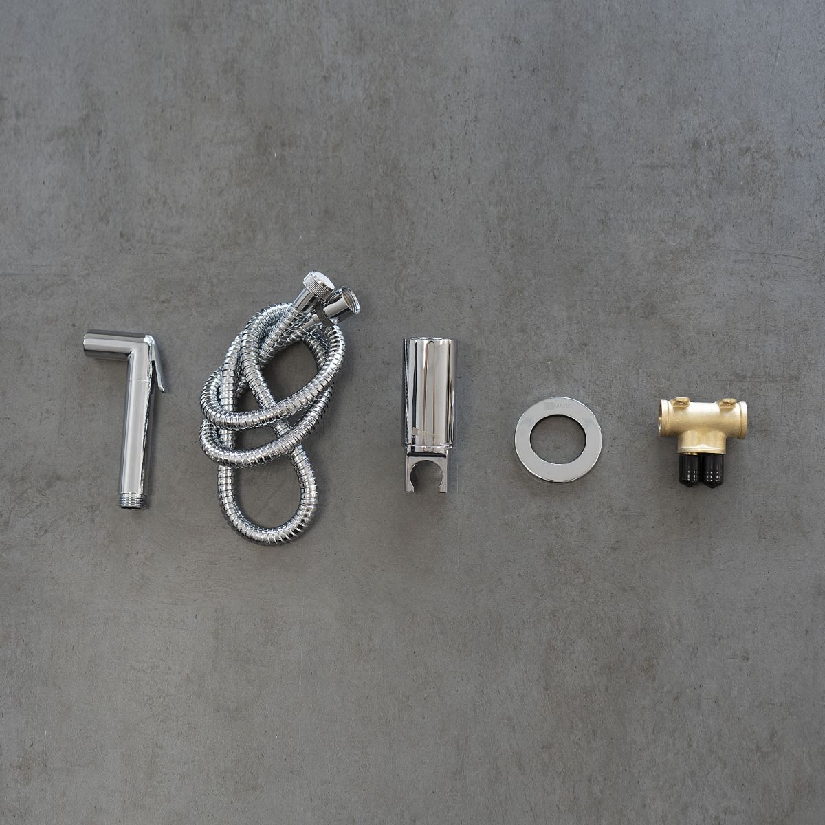 - Аксессуары в комплекте: лейка гигиенического душа с нажимным механизмом, душевой шланг 1,2 м (Turn-Free)