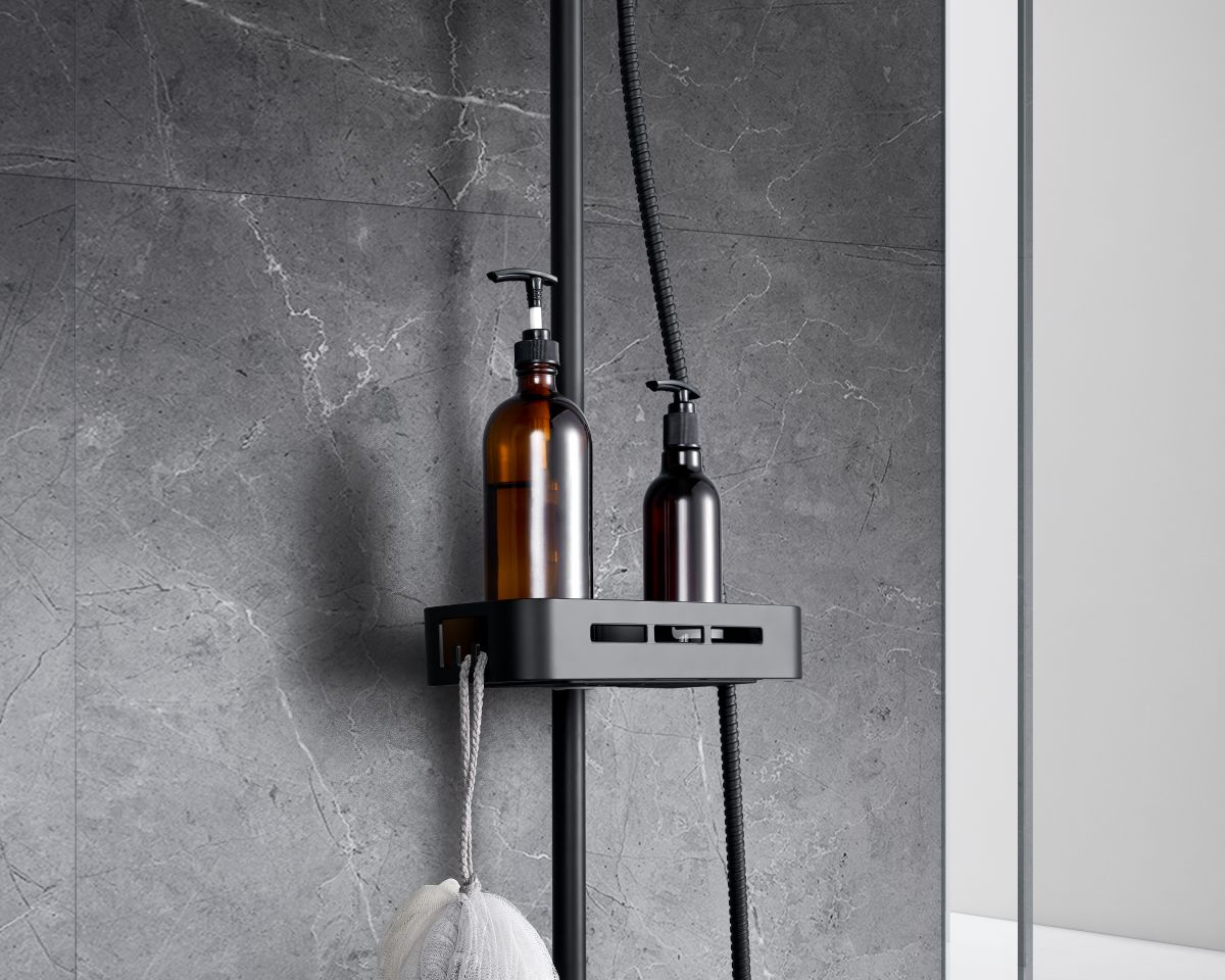 • Регулируемая по высоте полочка для душевых принадлежностей, съемная