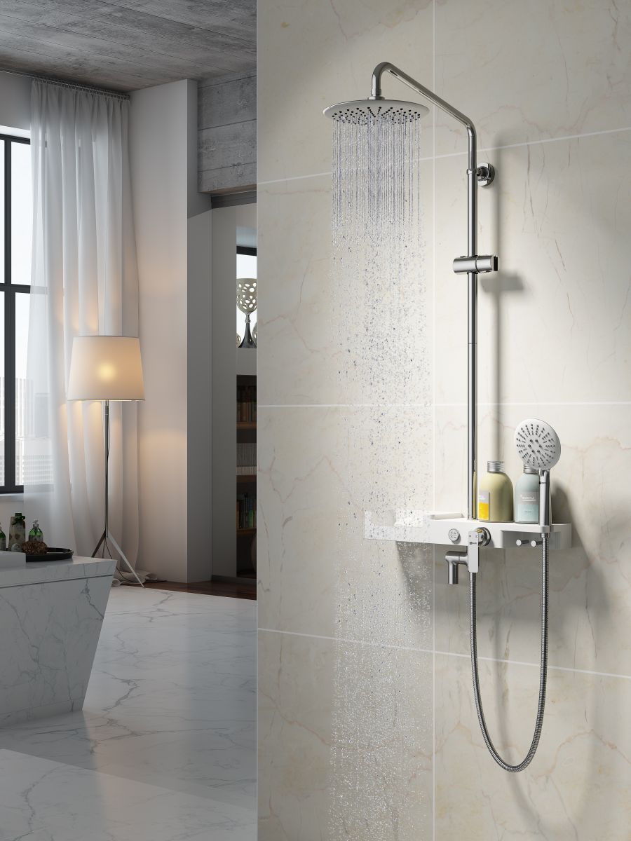 - Кнопочный переключатель (нажми-переключи) верхняя/ручная душевая лейка