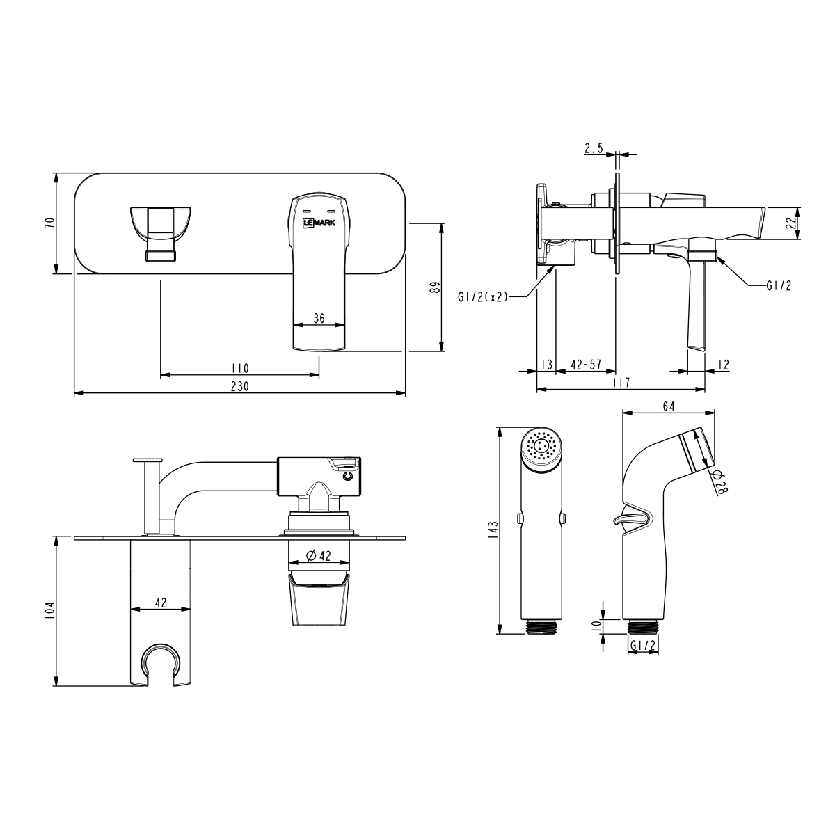 Смеситель Lemark Ursus LM7220BL с гигиеническим душем, встраиваемый