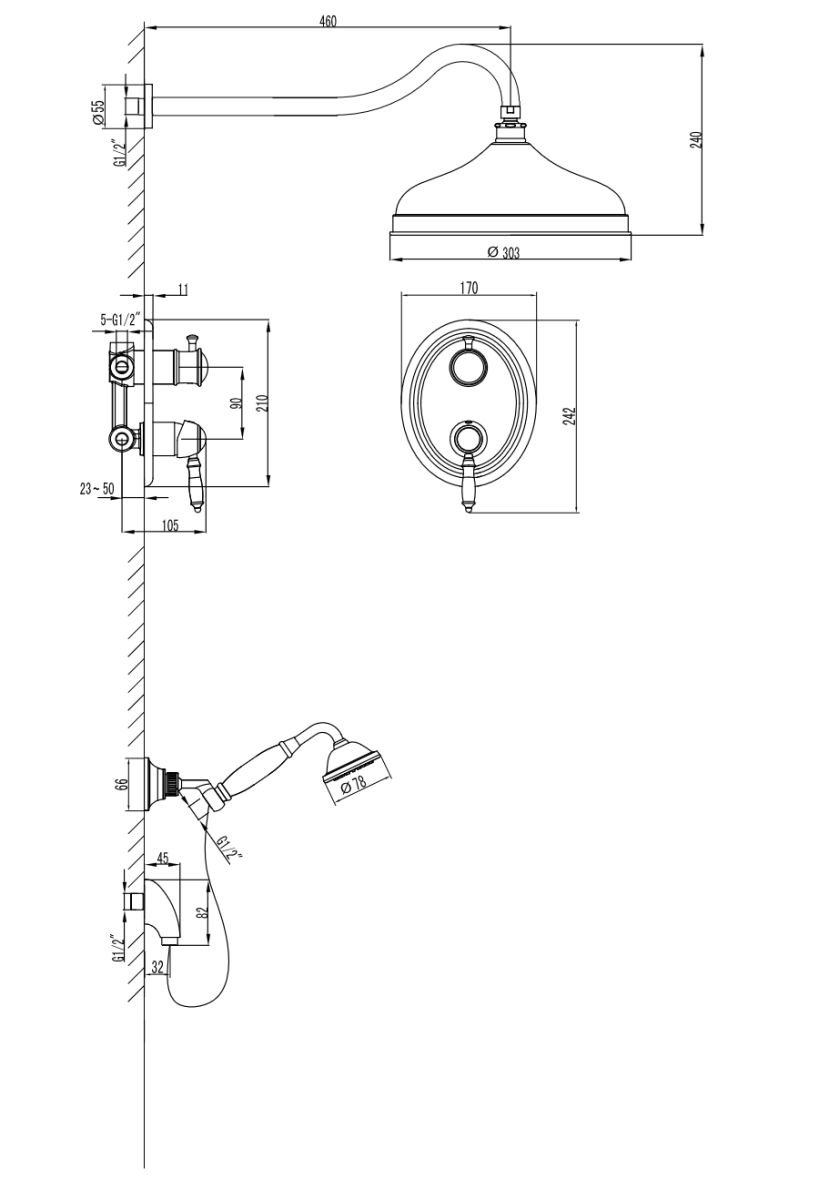 - Верхняя поворотная душевая лейка «Тропический дождь» Ø303 мм