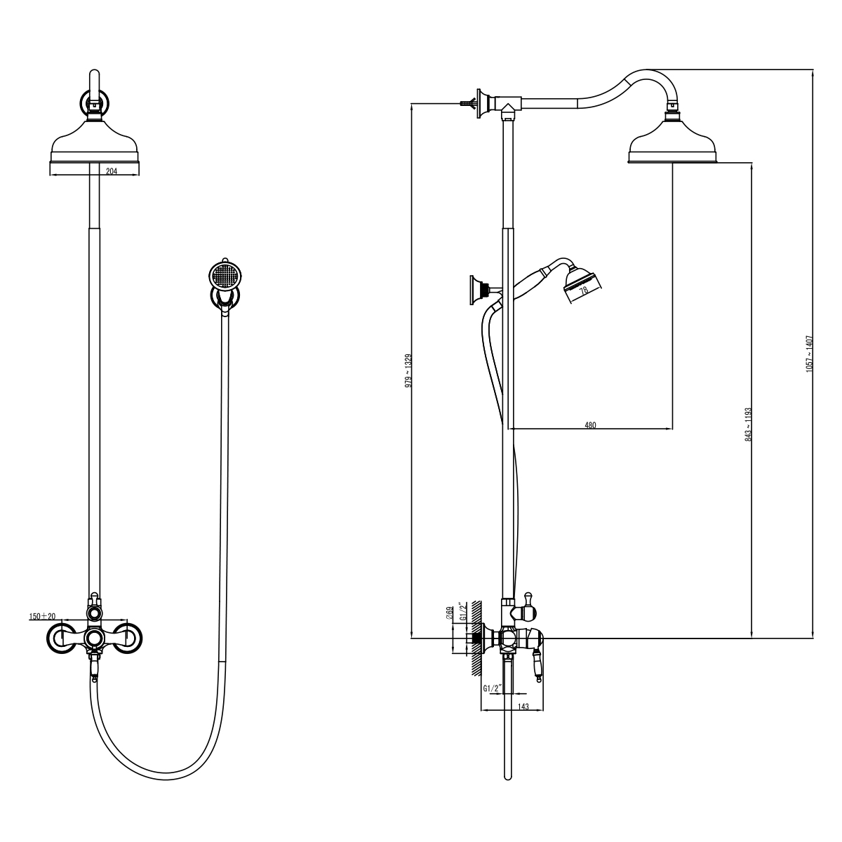 • Верхняя поворотная душевая лейка «Тропический дождь» Ø204 мм