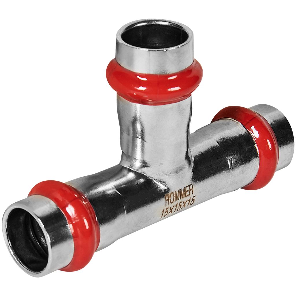Тройник ROMMER равнопроходной 15 из нержавеющей стали прессовой